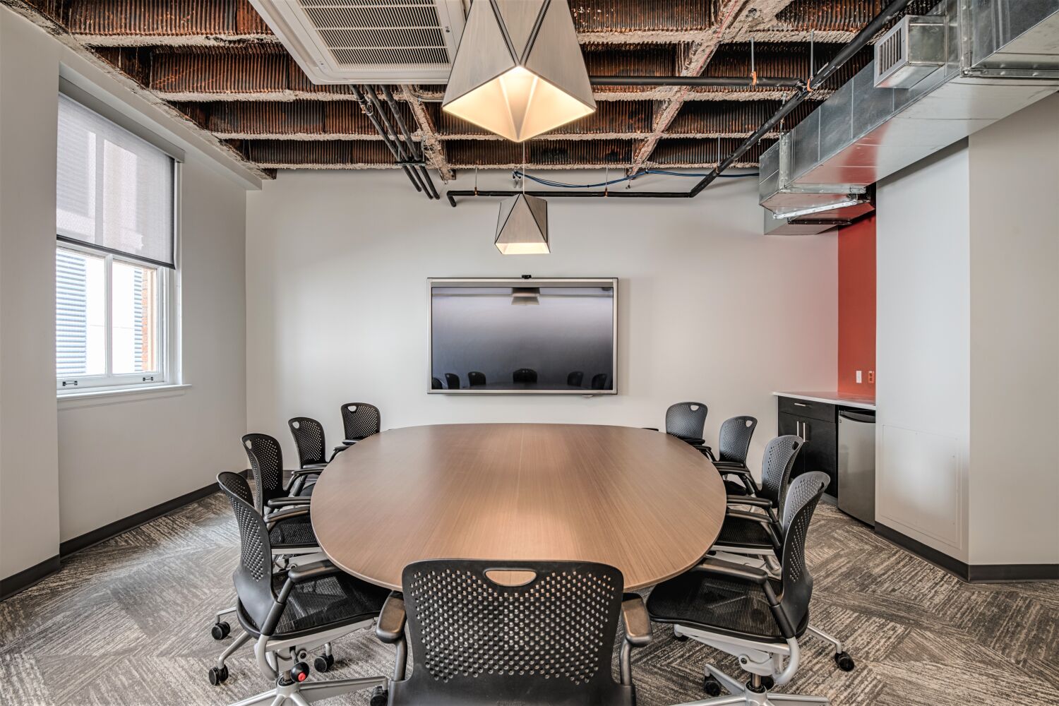 The design reflects MOA’s collaborative and flexible approach to work. A new three-story atrium was introduced within the building’s u-shaped plan, adding 2,000 SF of prime office space per floor. The interior fosters connection and creativity through an open office layout, a variety of meeting and huddle spaces, casual work areas, writable wall surfaces, flexible furniture, and sit/stand workstations. Technology is seamlessly integrated to support collaboration and productivity.