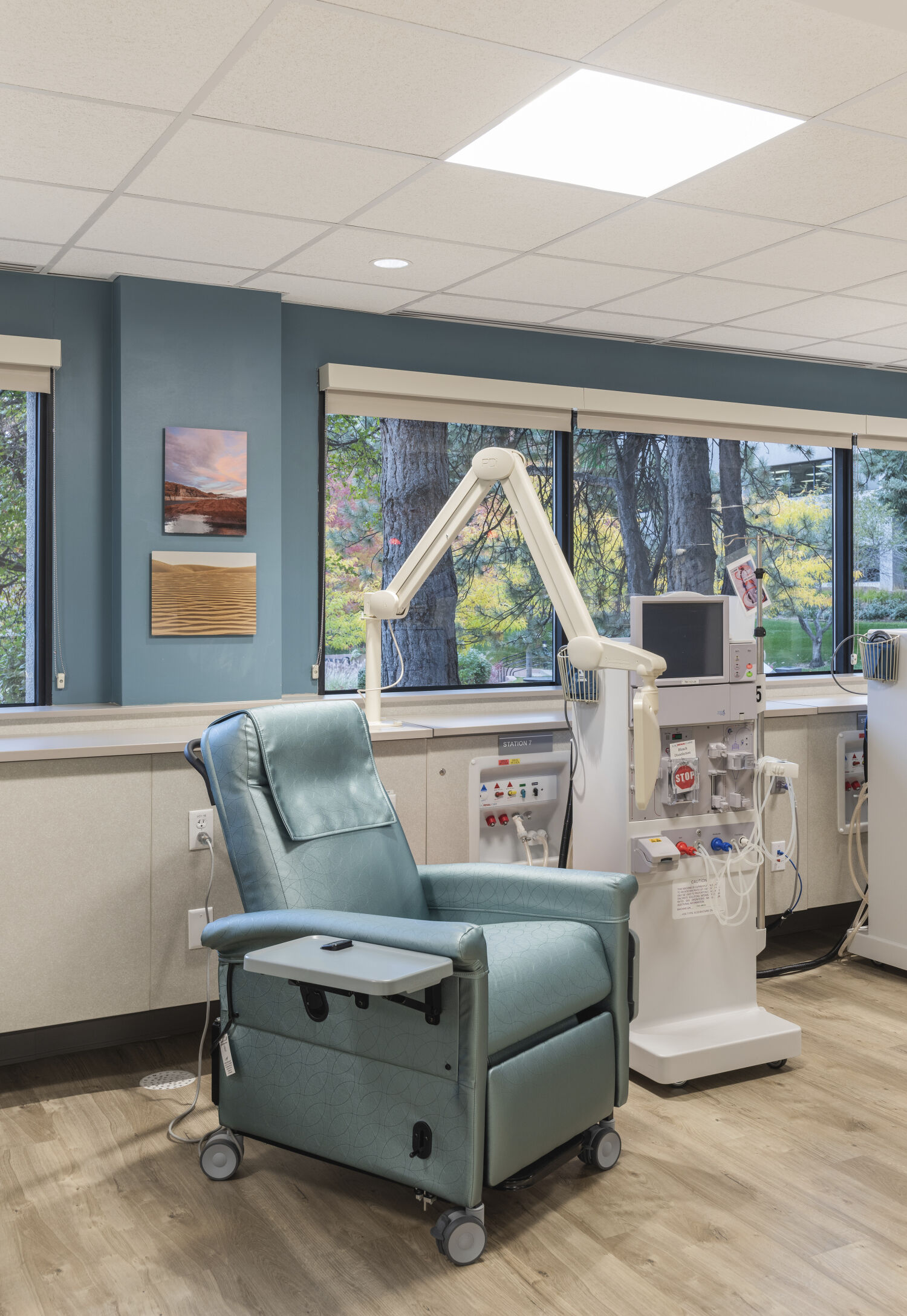 Altitude Dialysis allows patients to transition from clinic-based dialysis to home treatment safely and confidently, reducing travel time and disruption while improving health outcomes. The design fosters learning, independence, and comfort, demonstrating how healthcare environments can balance medical functionality with human-centered design. By providing a state-of-the-art prototype for patient-centered renal care, the clinic serves as a model for future dialysis facilities and elevates the standard of care within the community.