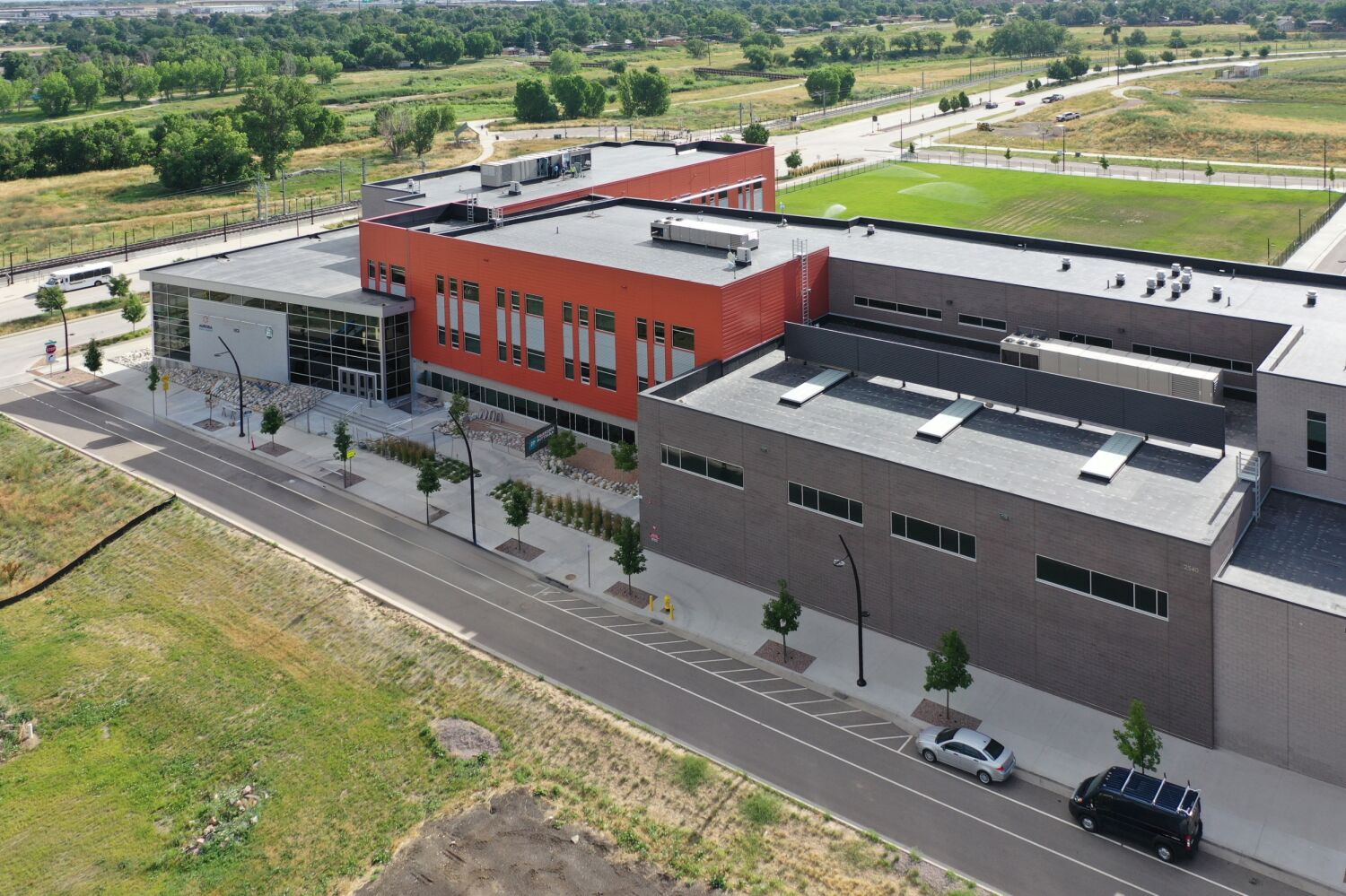 Located in Aurora’s Fitzsimons Innovation Community, the Aurora Science Technology School (ASTS) is part of the DSST Public Schools network, a regional system of public charter schools focused on STEM education. Serving students in grades six through twelve, the school provides a variety of learning environments, including dedicated science classrooms, flexible academic spaces, and collaborative commons areas. Positioned near the Anschutz Medical Campus and the Fitzsimons Innovation Campus, ASTS offers students the unique opportunity to engage with cutting-edge medical and life sciences research. The three-story design maximizes the compact site while delivering modern, adaptable learning spaces for both middle and high school students.