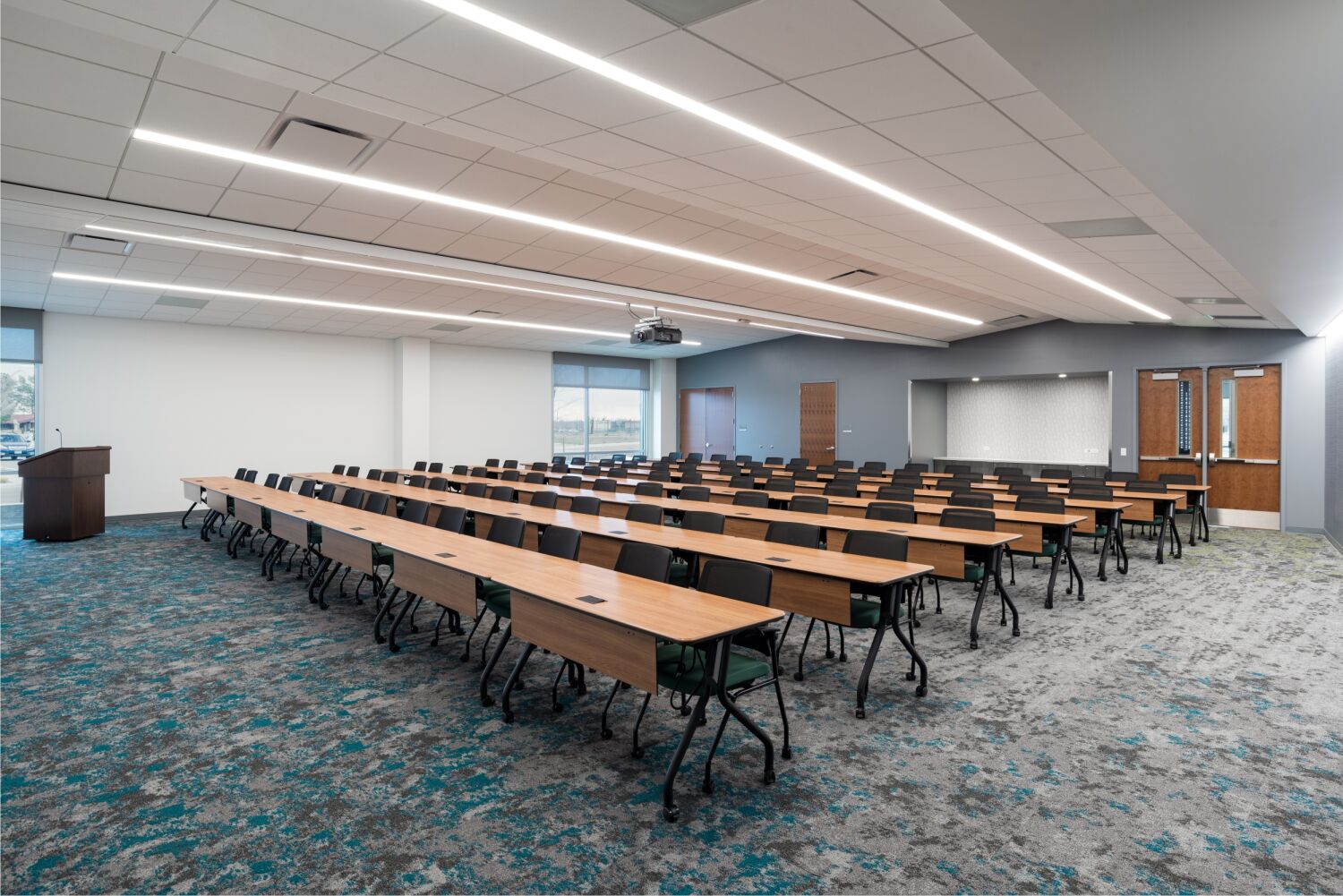 Designed for flexibility, adaptability, and collaboration, the building supports a diverse range of research and development tenants. The layout optimizes both workflow and functionality, with clearly separated circulation paths for people and equipment, as well as widened corridors to accommodate large-scale lab equipment. A variety of meeting spaces, including a distance learning–enabled training center, foster connection and knowledge sharing. On the exterior, vibrant fiber cement panels, sleek metal cladding, and steel sunshades bring energy and identity to the tilt-up concrete structure, while enhancing energy performance through passive solar control.