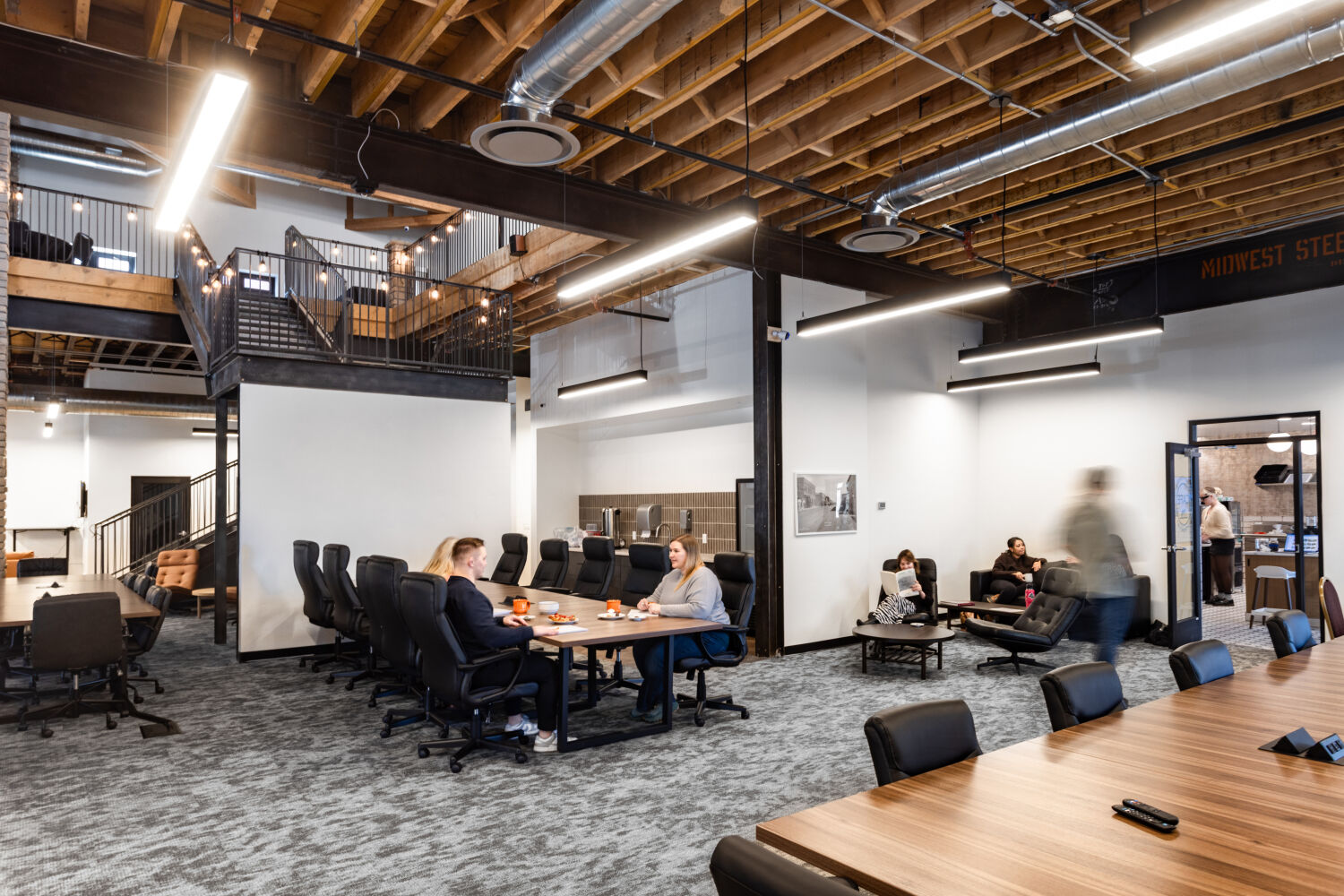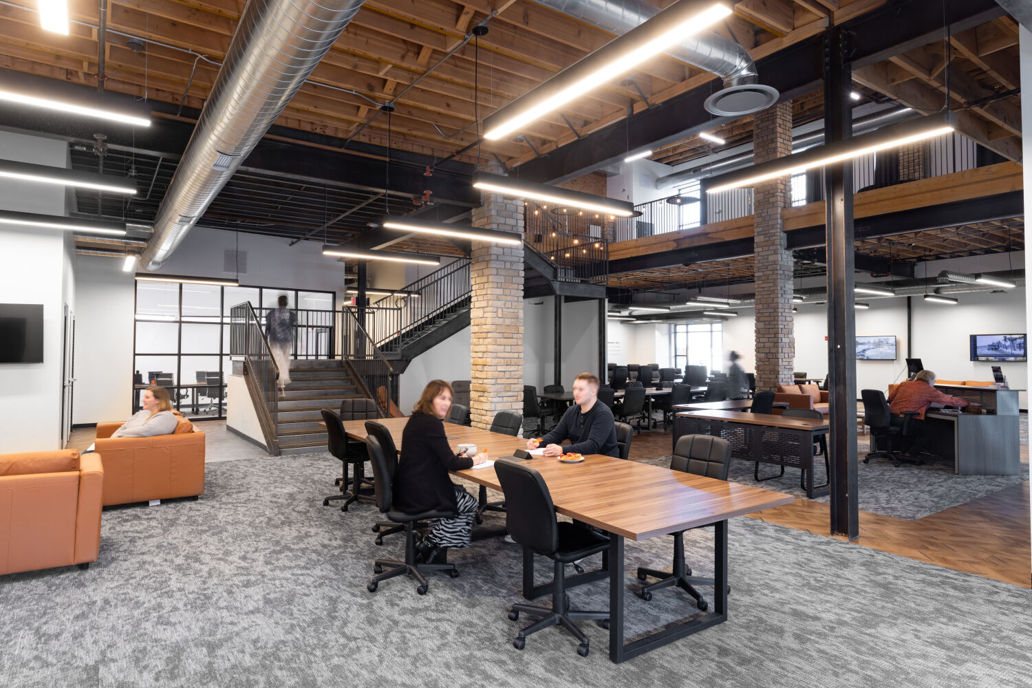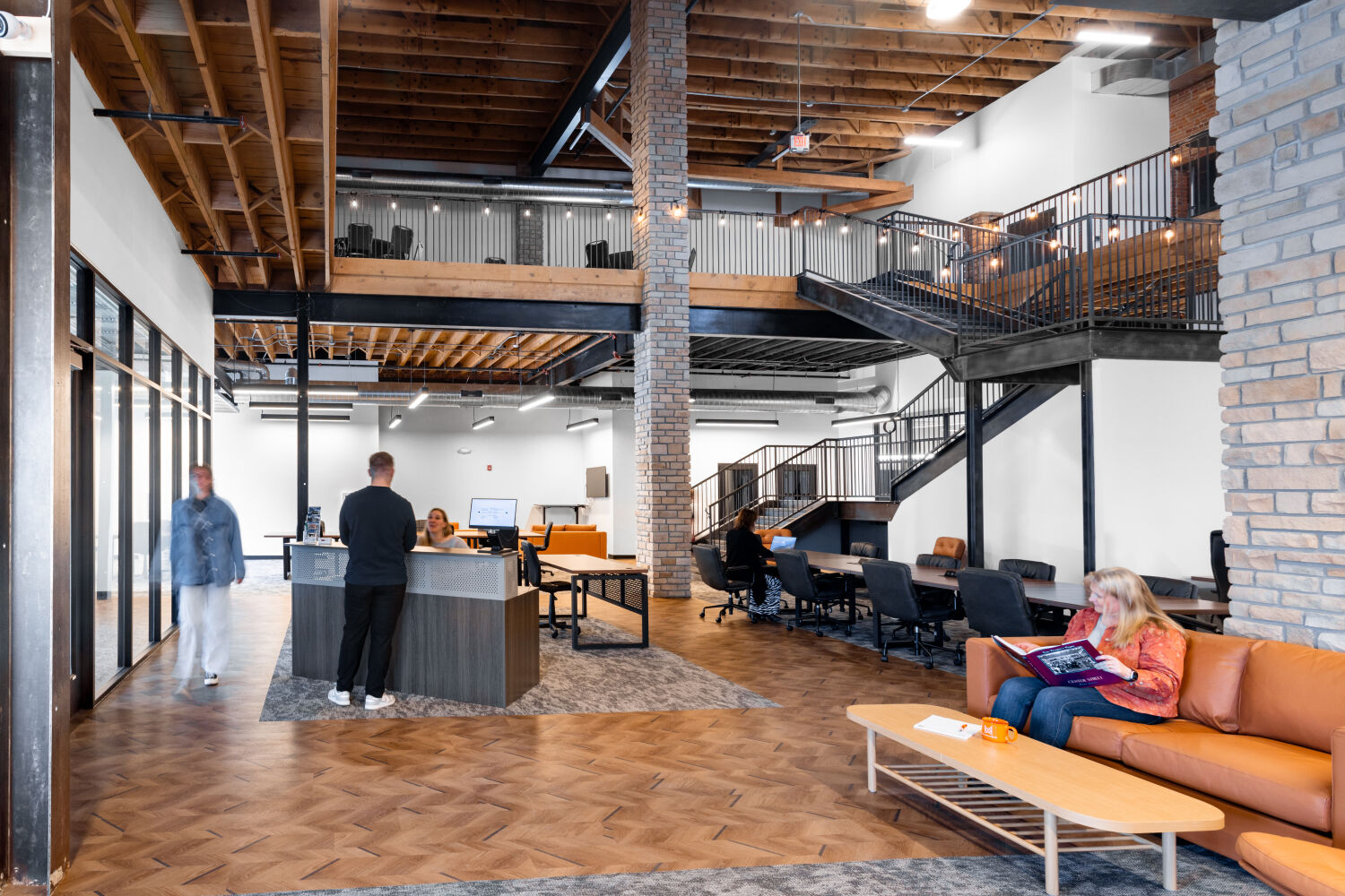 The project was inspired by shifting workforce trends and a desire to reactivate a historic downtown building as a modern business hub. The owner envisioned a space that provides an alternative to working from home, offering professional amenities and social interaction for a new generation of flexible workers. At the same time, energy efficiency and long-term resilience shaped the design, with upgraded insulation, high-efficiency mechanical systems, and infrastructure for rooftop solar and energy storage integrated into the building.