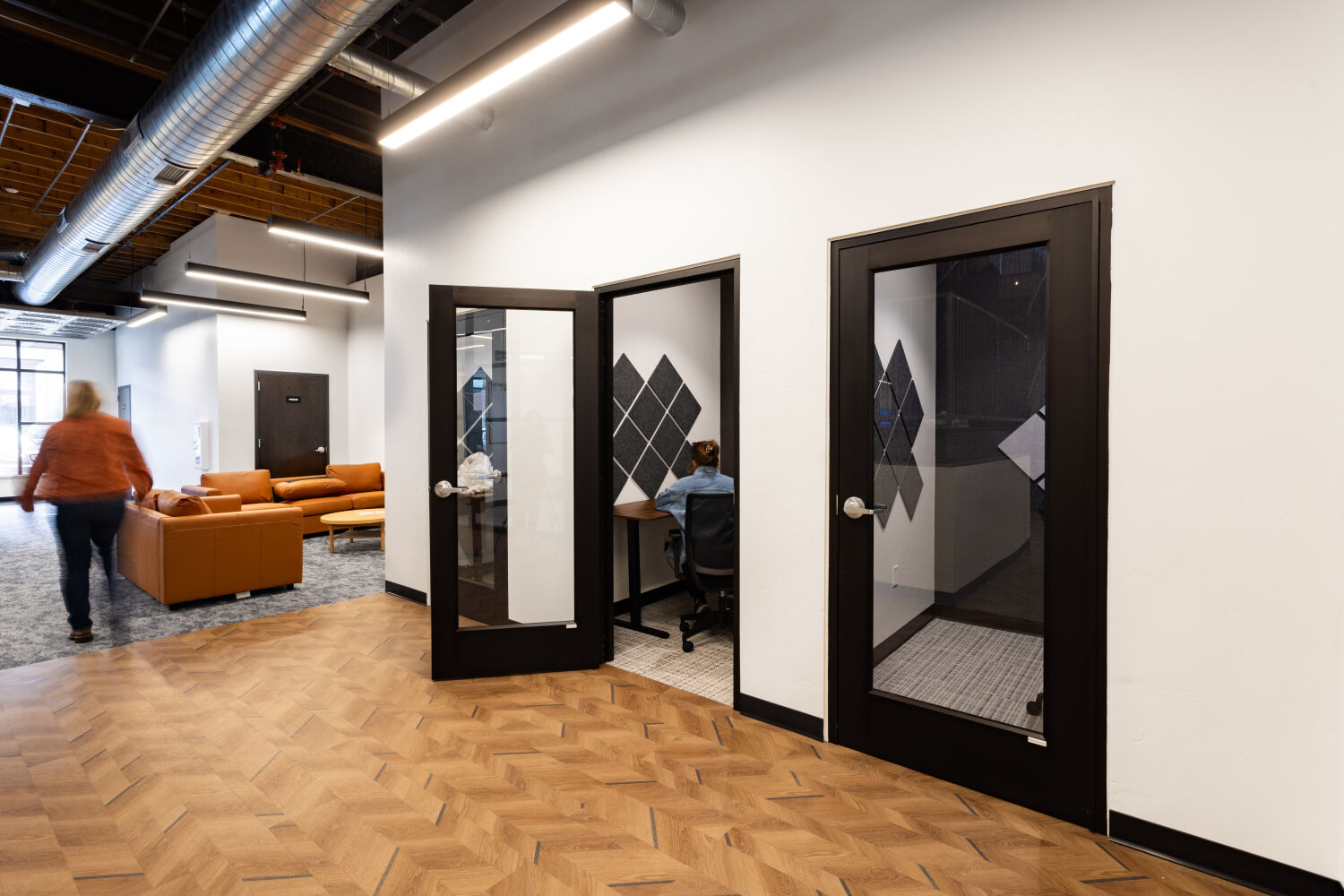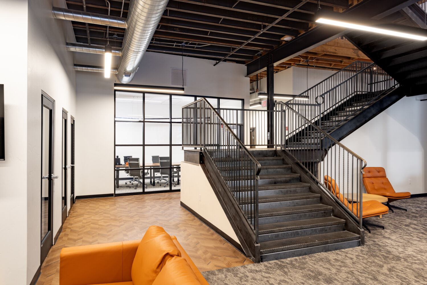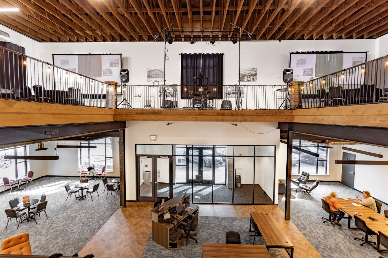 The project was inspired by shifting workforce trends and a desire to reactivate a historic downtown building as a modern business hub. The owner envisioned a space that provides an alternative to working from home, offering professional amenities and social interaction for a new generation of flexible workers. At the same time, energy efficiency and long-term resilience shaped the design, with upgraded insulation, high-efficiency mechanical systems, and infrastructure for rooftop solar and energy storage integrated into the building.