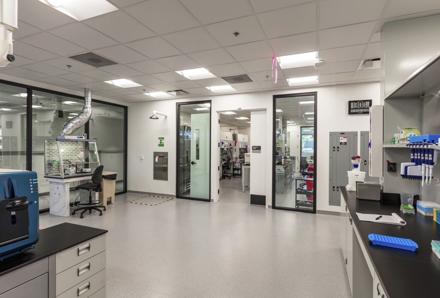The design was driven by Cogent’s mission to develop innovative therapies that improve patient lives. The layout prioritizes operational efficiency, safety, and flexibility, allowing research teams to collaborate effectively while maintaining strict laboratory requirements. The central placement of office and collaborative areas encourages interaction across scientific teams, supporting a culture of innovation.
