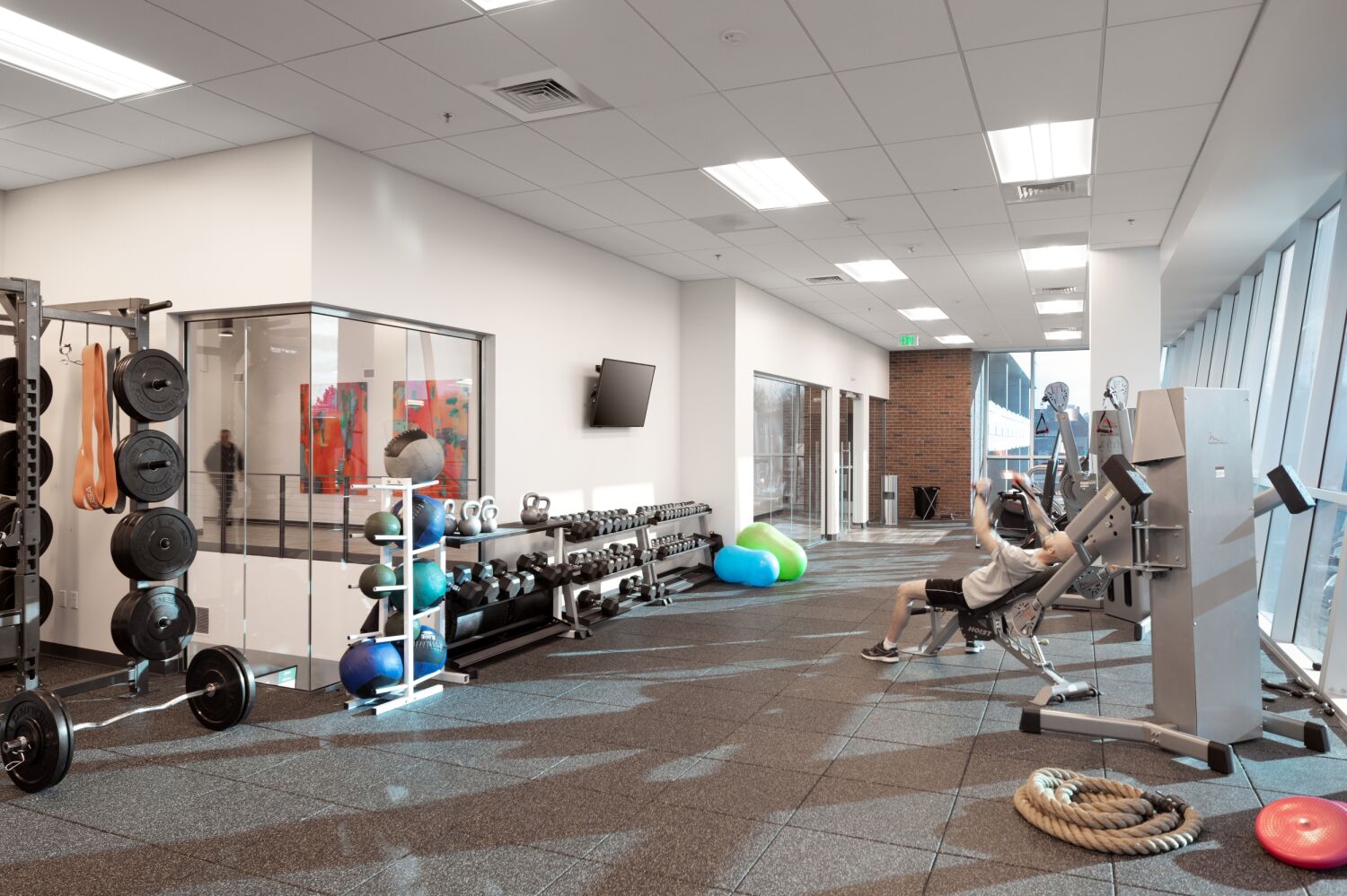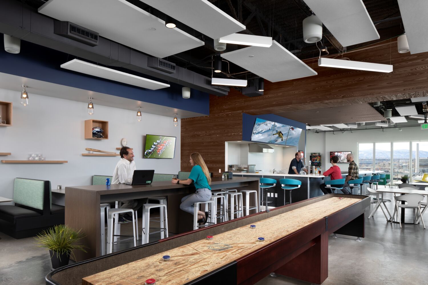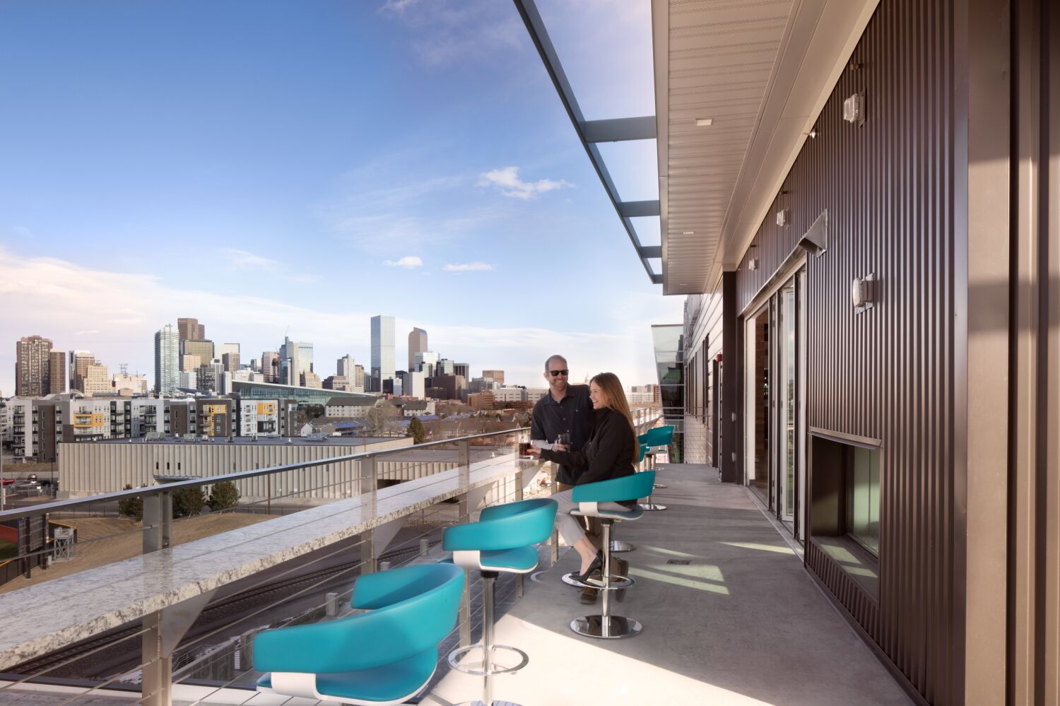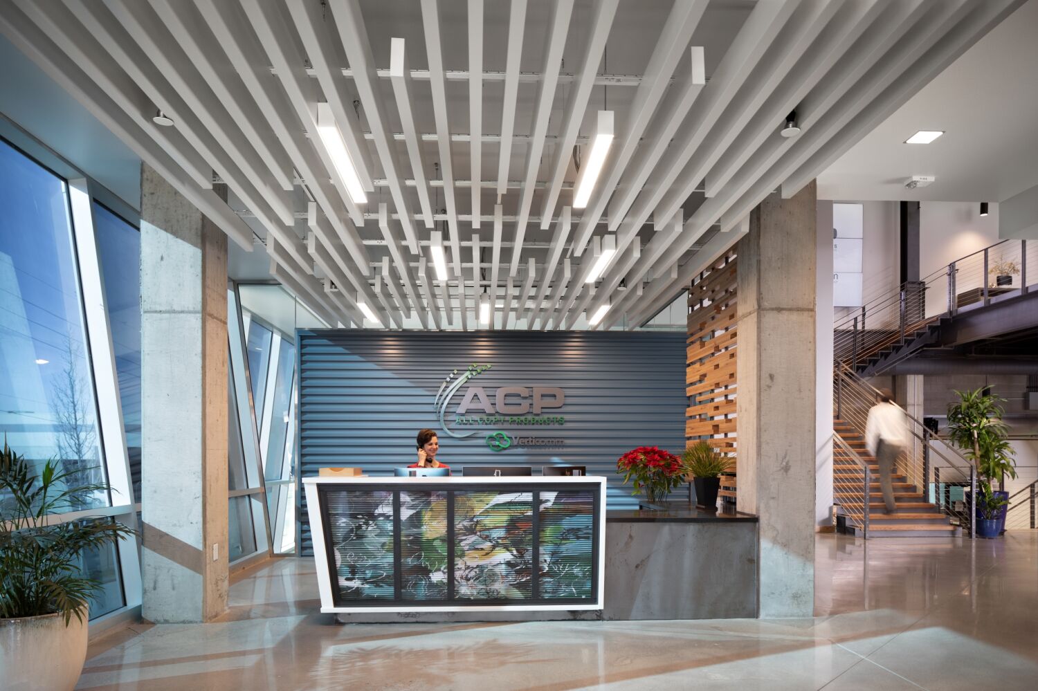 The headquarters creates a flexible, inspiring workplace that fosters employee engagement, client interaction, and operational efficiency. Key amenities include a fifth-floor fitness area and employee lounge opening onto a balcony with expansive views of downtown Denver and the Front Range. The building prioritizes user comfort through daylighting and one of the Denver metro area’s largest installations of electrochromic glass, which adjusts sunlight levels automatically to reduce glare and eliminate the need for blinds. By blending thoughtful interior programming, industrial-inspired architecture, and sustainable, user-focused design, the facility strengthens All Copy Products’ brand, culture, and presence in the Denver community.