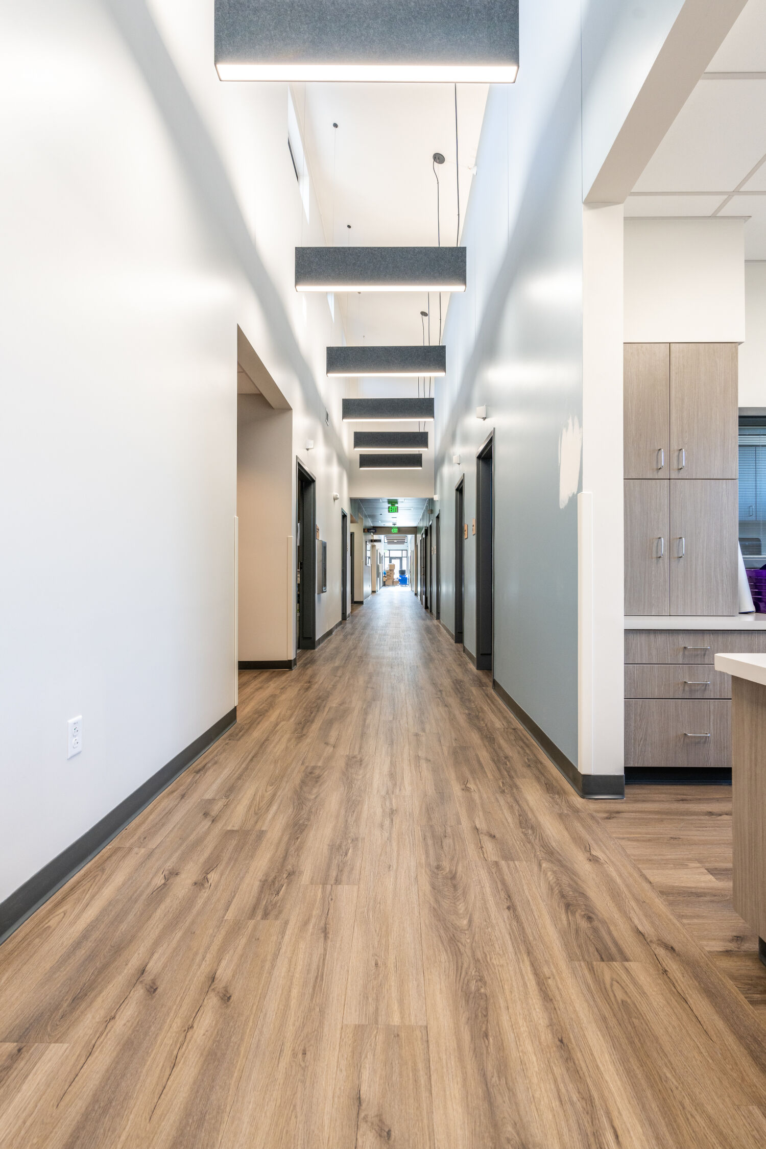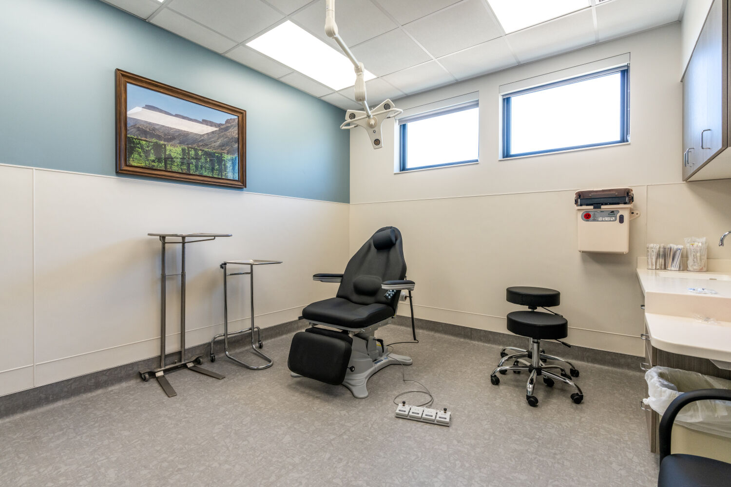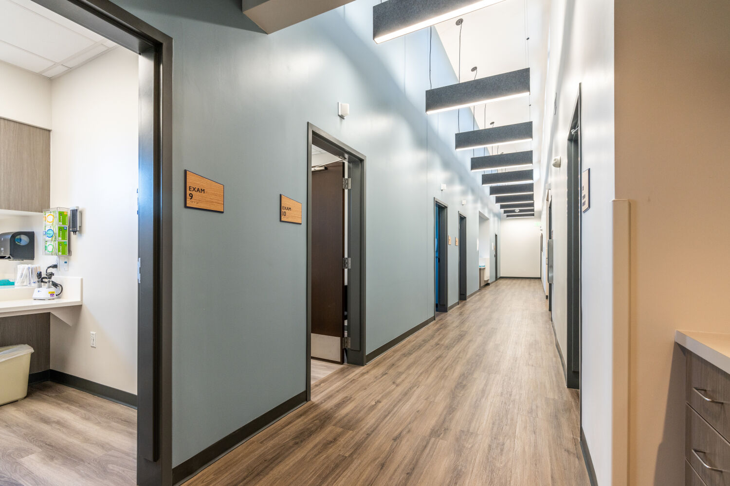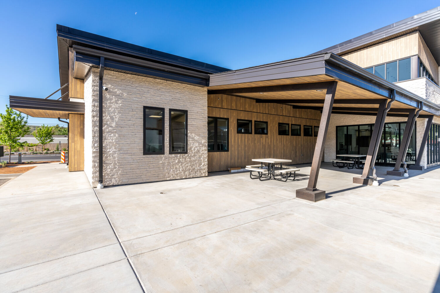 The vision for the Grand Valley Primary Care & Acute Care Clinic grew from a shared commitment to strengthen healthcare access while supporting the evolving needs of a small but growing community. Working in partnership with Community Hospital and the Town of Palisade, the design team created a facility that serves immediate medical needs while remaining flexible for the future. Adaptability became a key driver, with the building thoughtfully planned to function today as a family practice and urgent care clinic while allowing for potential conversion to retail or restaurant use over time. Site design also played a critical role, as the clinic shares its surroundings with a community gym and fire station, prompting improvements to circulation, access, and safety, including close-in patient parking, a dedicated drop-off zone, and ambulance access that support both operational efficiency and user convenience.