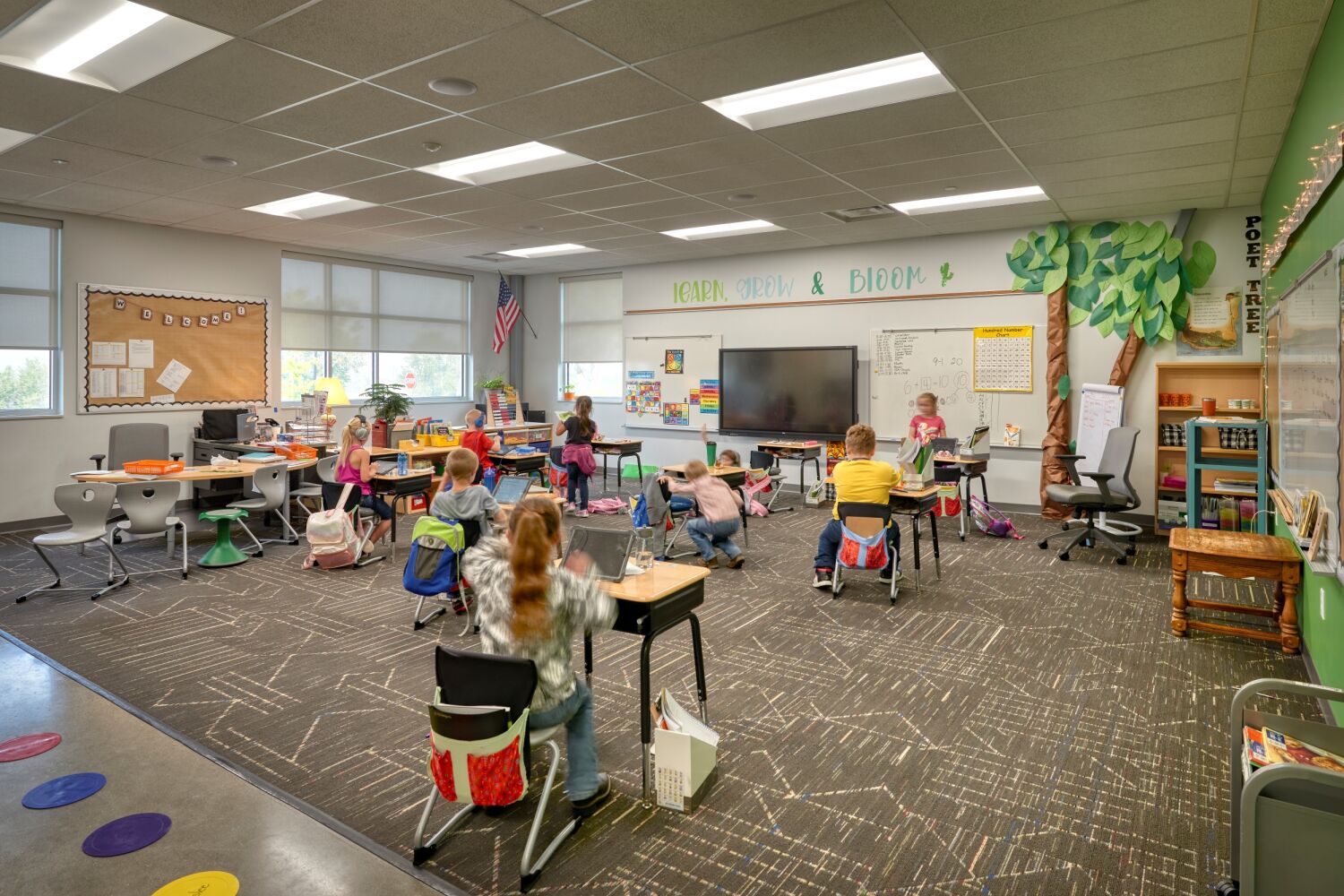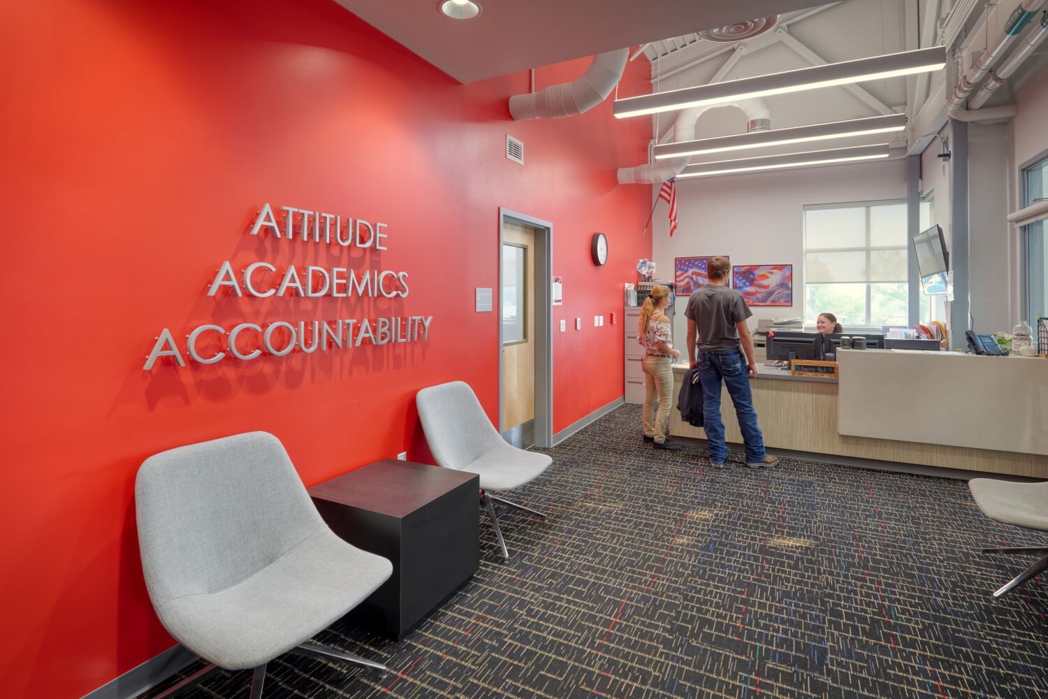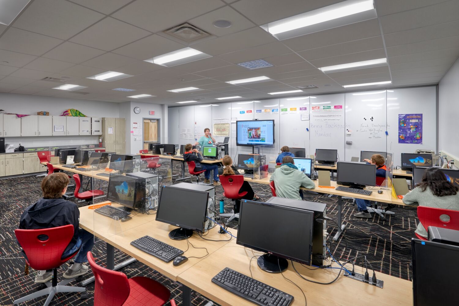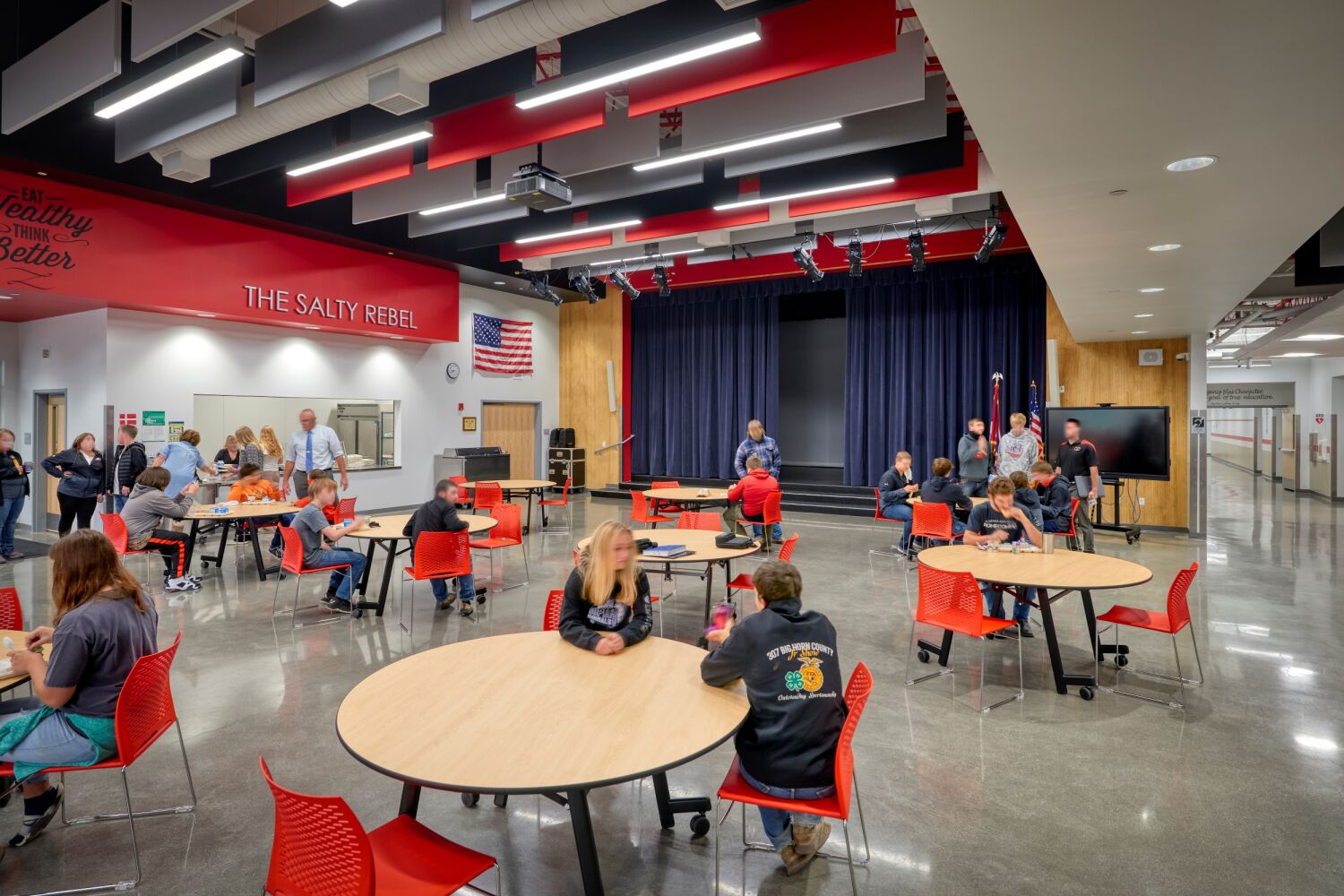 The campus design reflects a thoughtful balance between contemporary educational strategies and the traditions of classic school architecture. MOA ARCHITECTURE focused on creating intuitive circulation, abundant natural light, and clear connections between learning spaces to encourage collaboration and engagement. Each school has unique architectural elements—including sloping roofs, extended canopies, and tailored common areas—while maintaining a cohesive campus identity. Specialized Career and Technical Education spaces, such as welding and wood shops, an agriculture lab, and a business center, were integrated to prepare students for practical, real-world opportunities and expand the district’s educational mission.