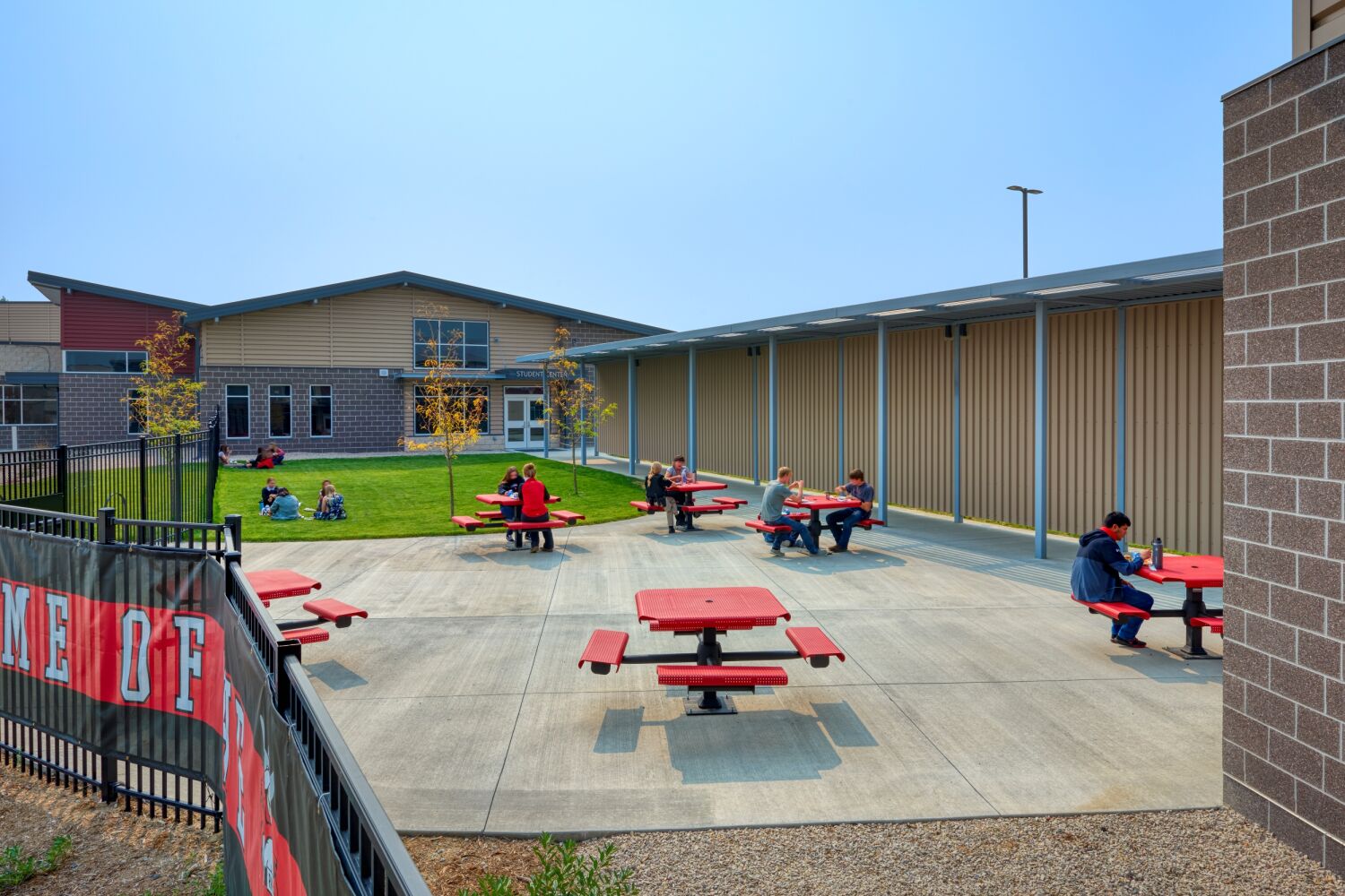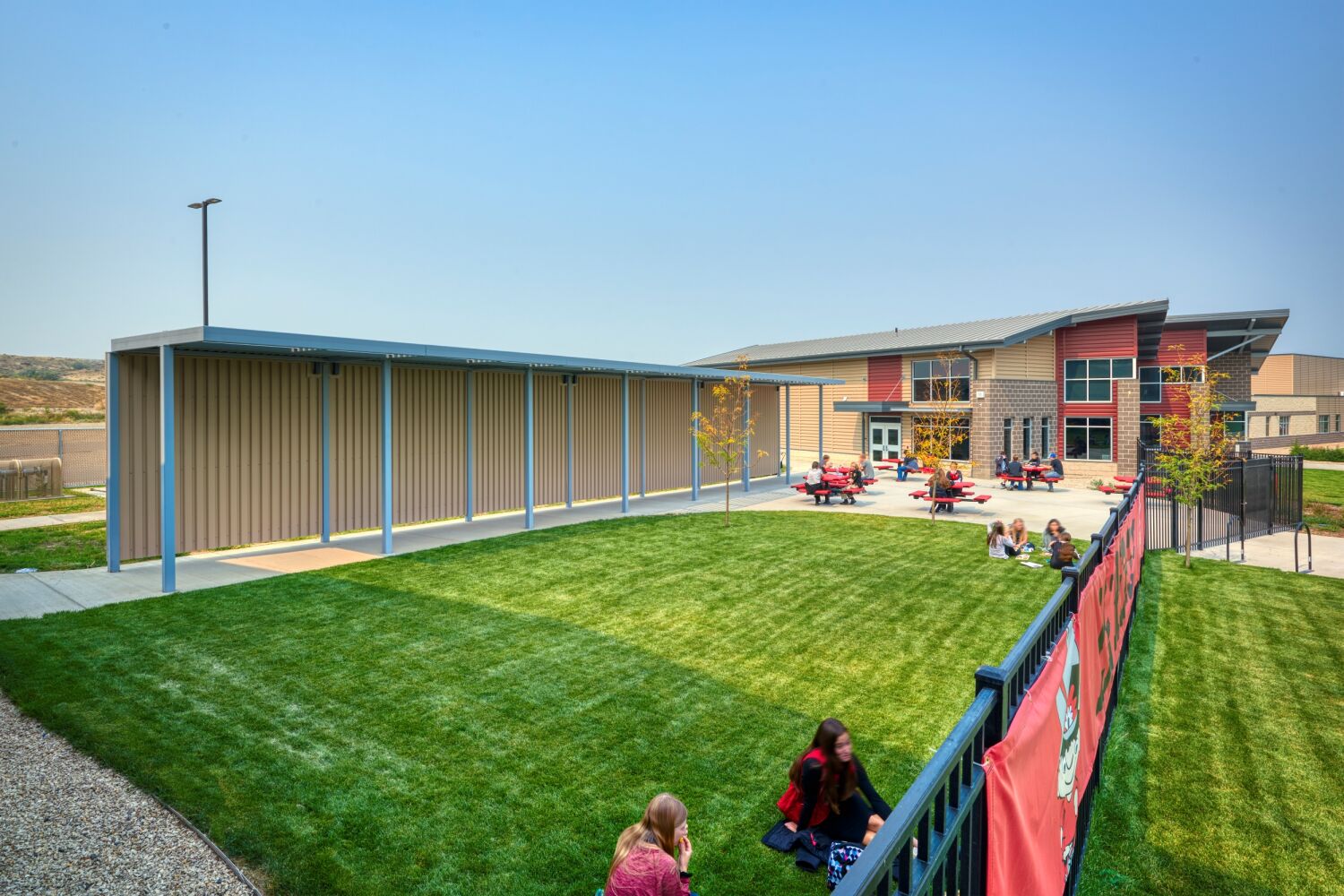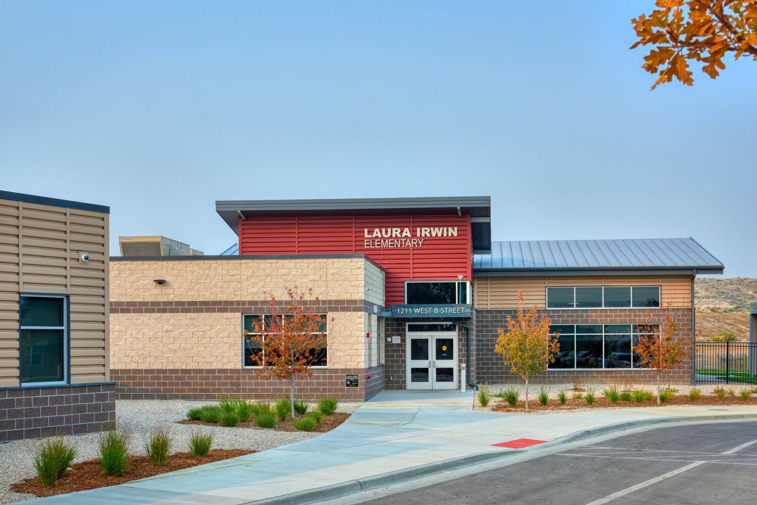 Located in the northern Wyoming town of Basin, the Laura Irwin Elementary School and Riverside Middle/High School provide a modern, cohesive educational campus for Big Horn School District #4. The one-story facilities are designed to meet the needs of students from early childhood through high school, integrating flexible learning environments, shared commons, and specialized program spaces. The campus is organized around a central courtyard that connects the schools while maintaining distinct entryways, fostering both community and identity within each school. Key shared amenities include a centralized kitchen, library, performance stage, and art and music classrooms.
