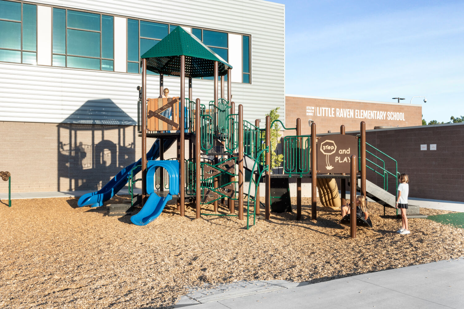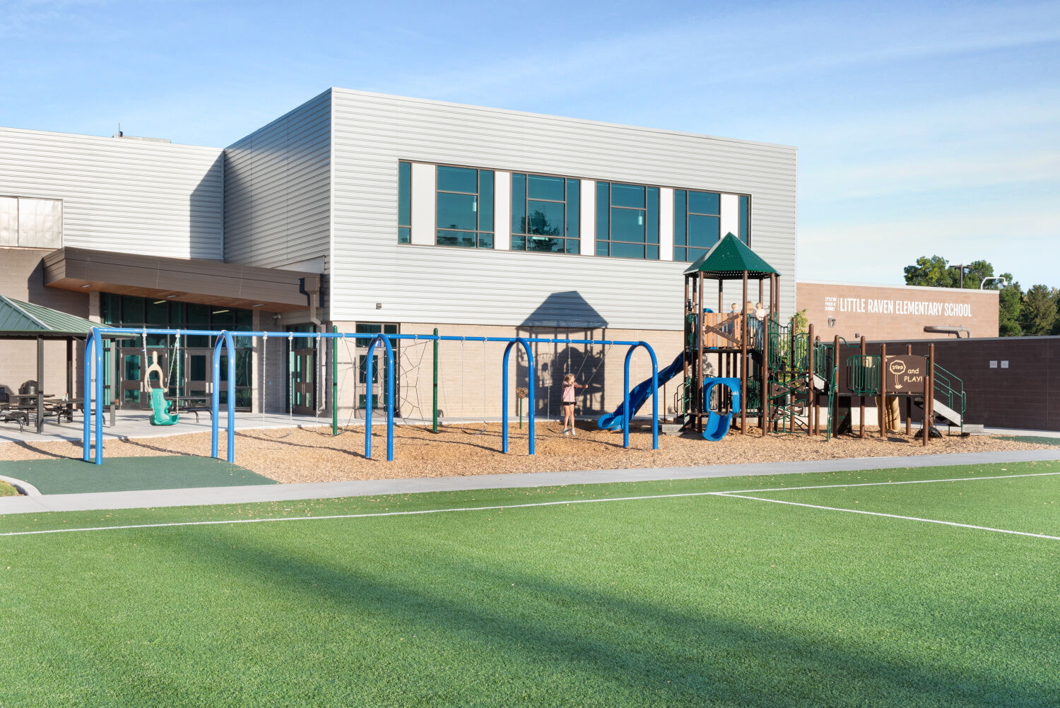 Little Raven Elementary is a new ground-up school designed to serve 700 students, bringing together two former elementary schools into a single, cohesive learning community. The school blends flexible learning environments, themed classroom pods, and robust community spaces to support a wide range of educational and social experiences. From collaborative maker areas to quiet reflection nooks, each space is thoughtfully designed to accommodate diverse learning styles while fostering connection and curiosity. Named for Chief Little Raven of the Arapaho Nation, the school honors cultural heritage while providing a forward-looking space for exploration, growth, and discovery.