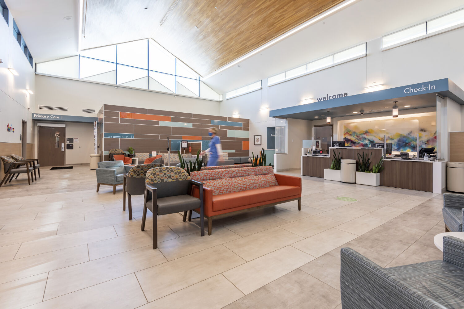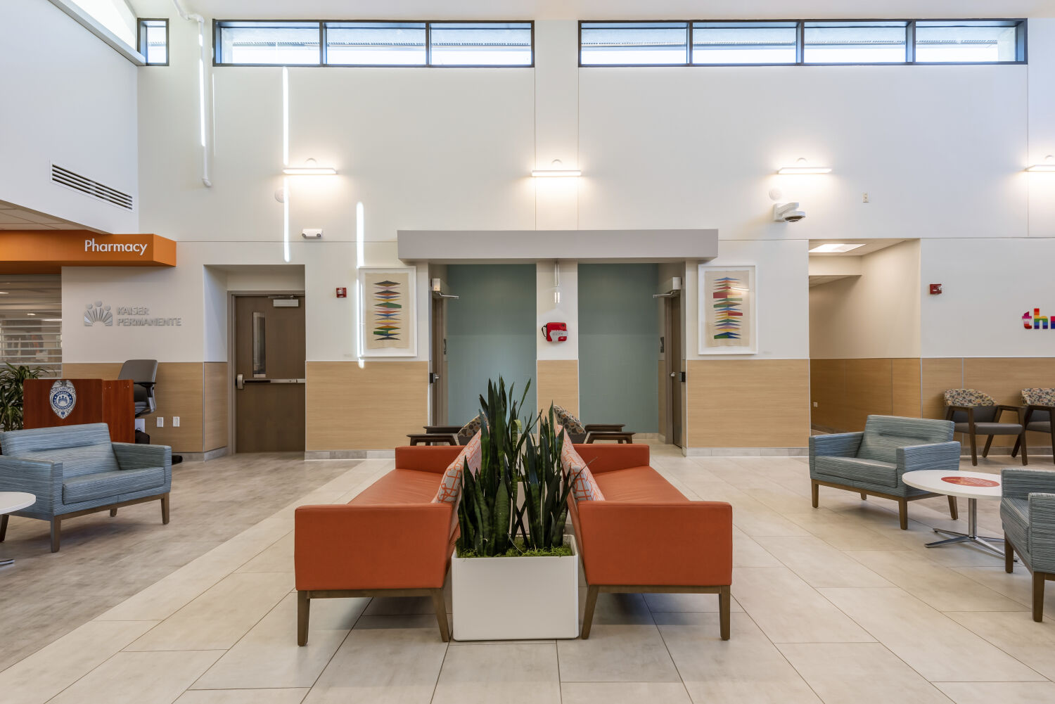 The renovation transforms the facility into a more efficient, patient-focused environment. Updates include refreshed laboratory, pharmacy, imaging, and clinic wings, as well as restructured team workstations and a new behavioral health pod. The lobby now functions as a bright, welcoming entry point rather than a simple waiting area, while wayfinding improvements and consistent branding enhance the visitor experience. Staff benefit from improved workflow and collaboration, ensuring the facility supports both operational efficiency and high-quality patient care for years to come.