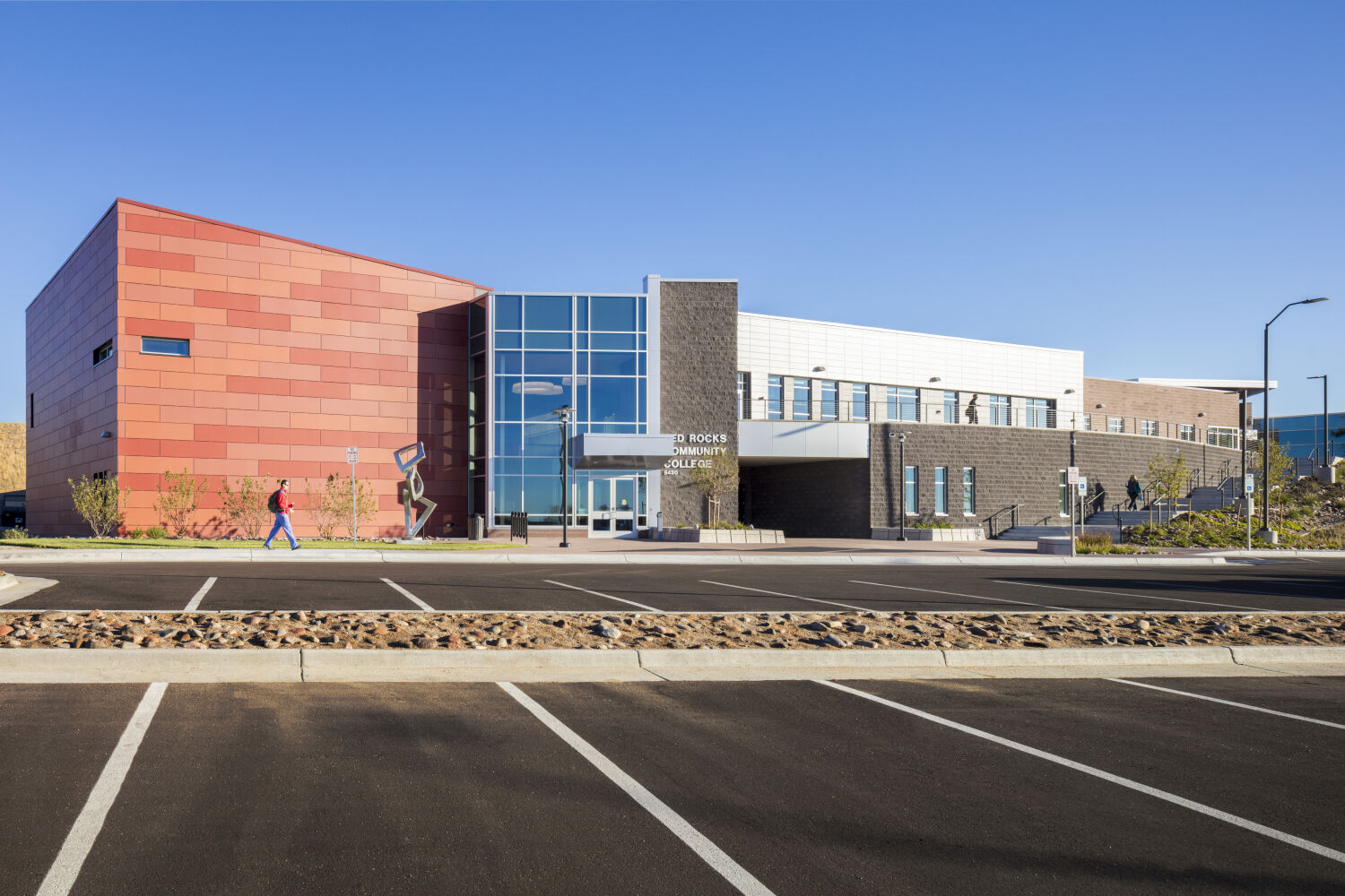 The Health Professions & Sciences Building positions Red Rocks Community College as a regional leader in healthcare education. By consolidating programs and providing flexible, modern learning environments, the facility supports a high-quality education for current and future health professionals. Beyond student learning, the building serves as a community resource, offering continuing education opportunities for incumbent healthcare workers and supporting the campus as a regional triage and crisis response center. The project strengthens Jefferson County’s capacity to train skilled professionals, directly contributing to the health and wellness of the surrounding communities.