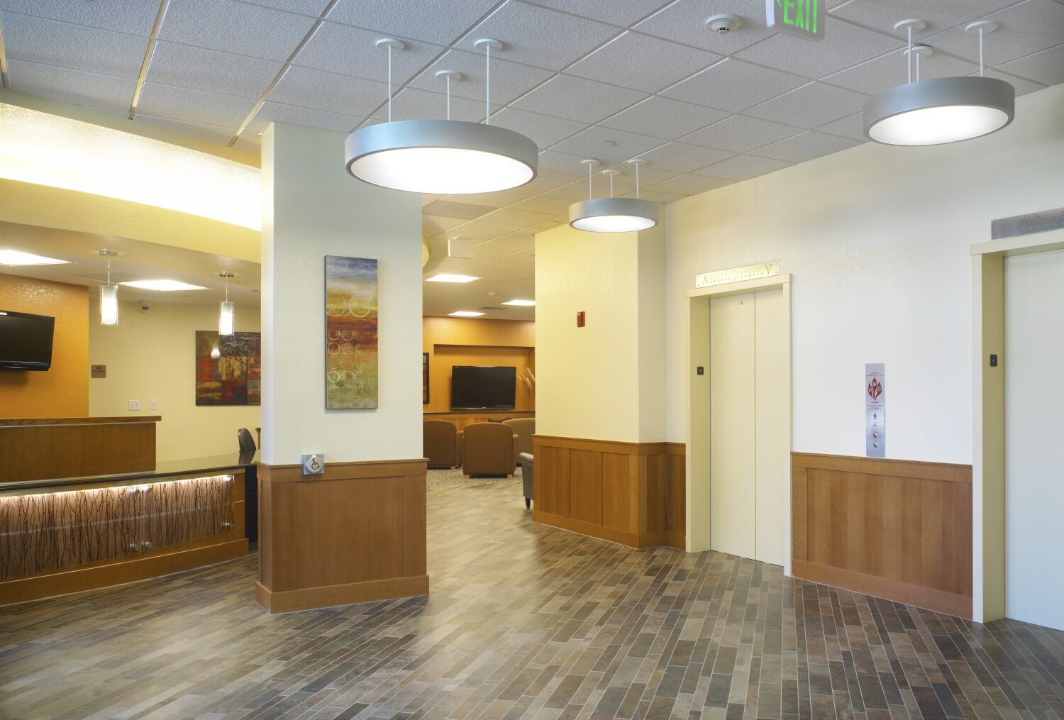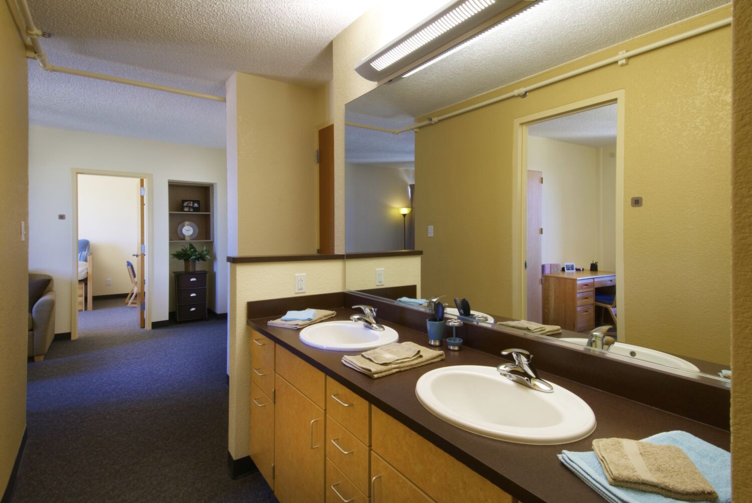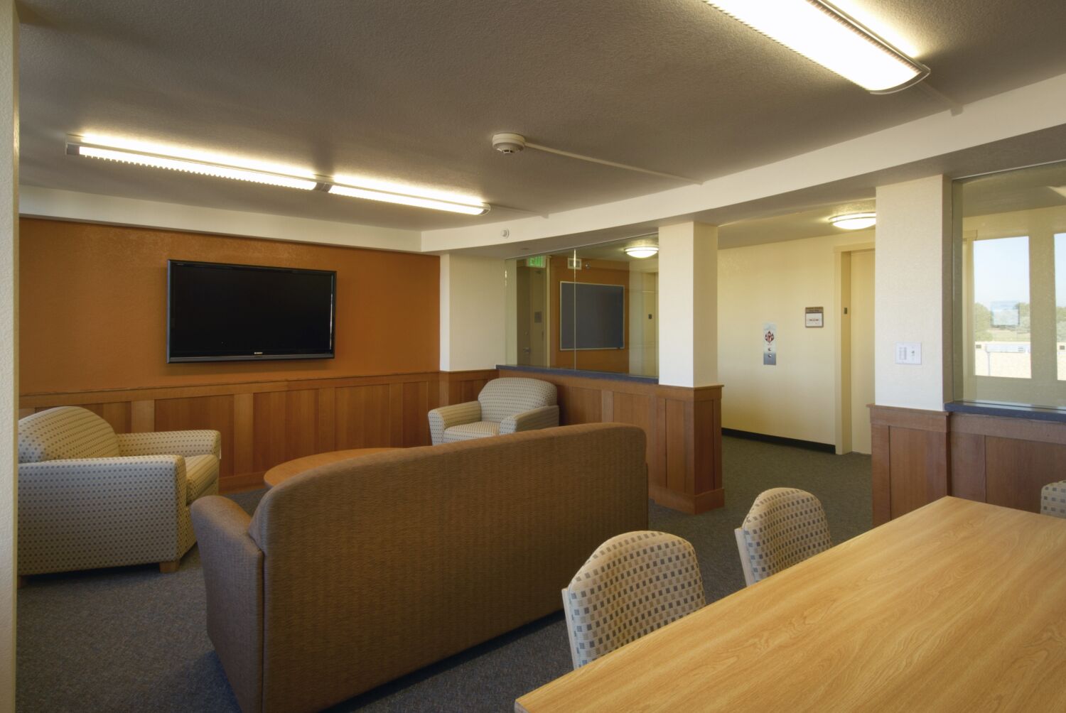The renovation was driven by the desire to enhance student life while extending the facility’s long-term functionality. Natural light was maximized throughout resident floors to create a warmer, more inviting environment. Common spaces, including study areas, student lounges, and recreational spaces, were redesigned to foster community engagement and collaboration. The front desk and lobby were reconfigured to improve visibility, safety, and comfort for residents and staff.