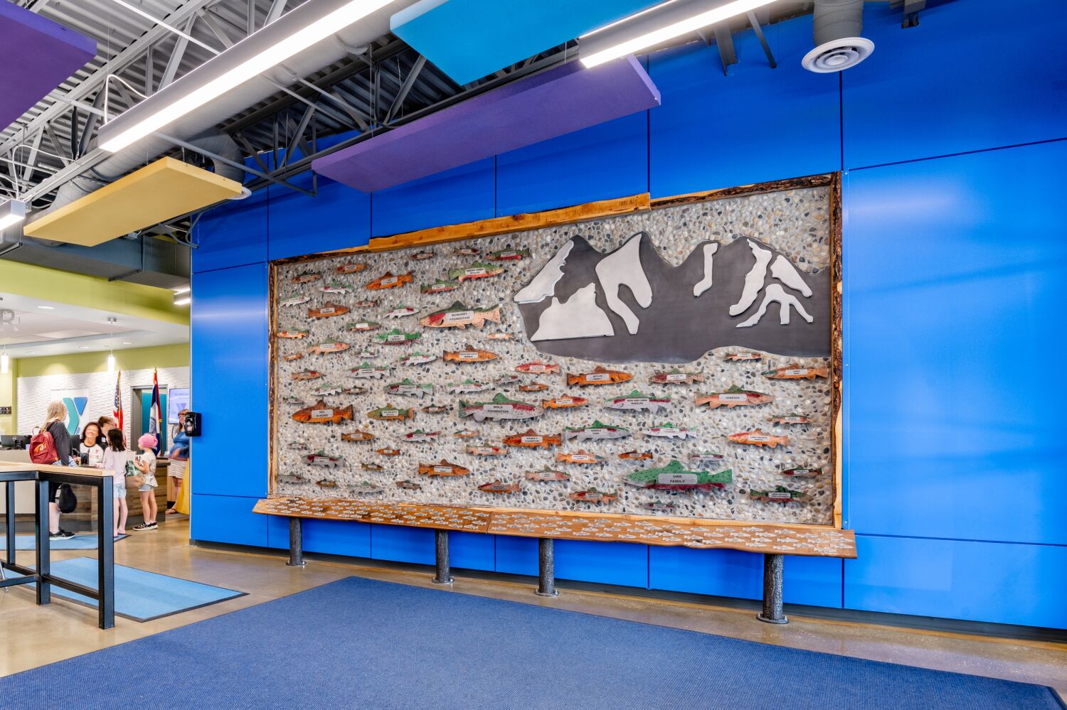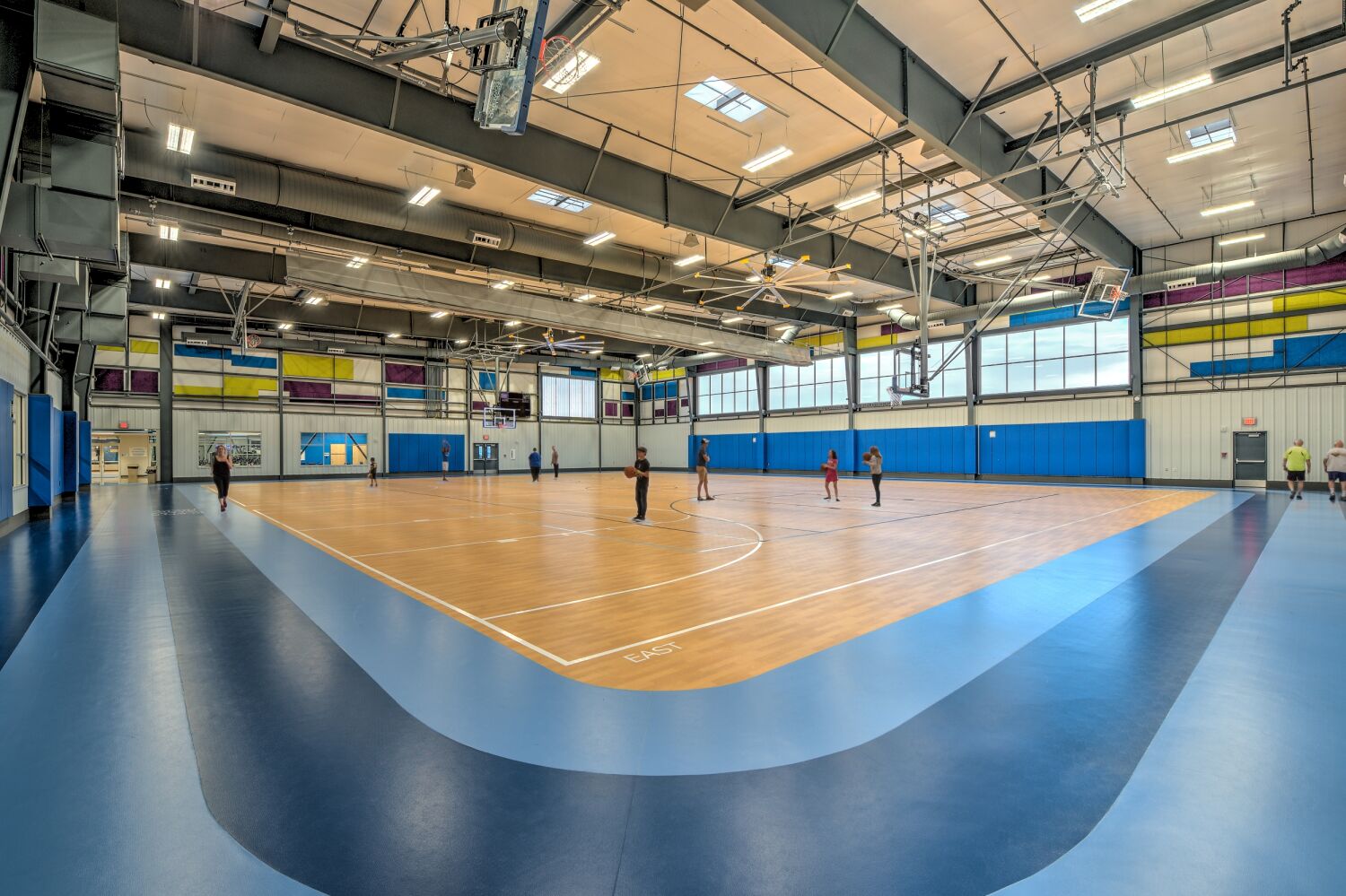 The design was driven by the YMCA’s mission to foster family-focused, community-centered experiences. Interior and exterior spaces utilize a bright and bold color palette to create an energetic and welcoming environment, while the central control desk ensures visibility and safety throughout the facility. The triangular site, with a 30-foot grade differential, inspired creative massing and circulation strategies, ensuring all program areas are accessible and well-integrated. MOA ARCHITECTURE collaborated closely with Barker Rinker Seacat, a specialist in recreation architecture, to ensure the facility supports diverse wellness, sports, and childcare programs for the community.