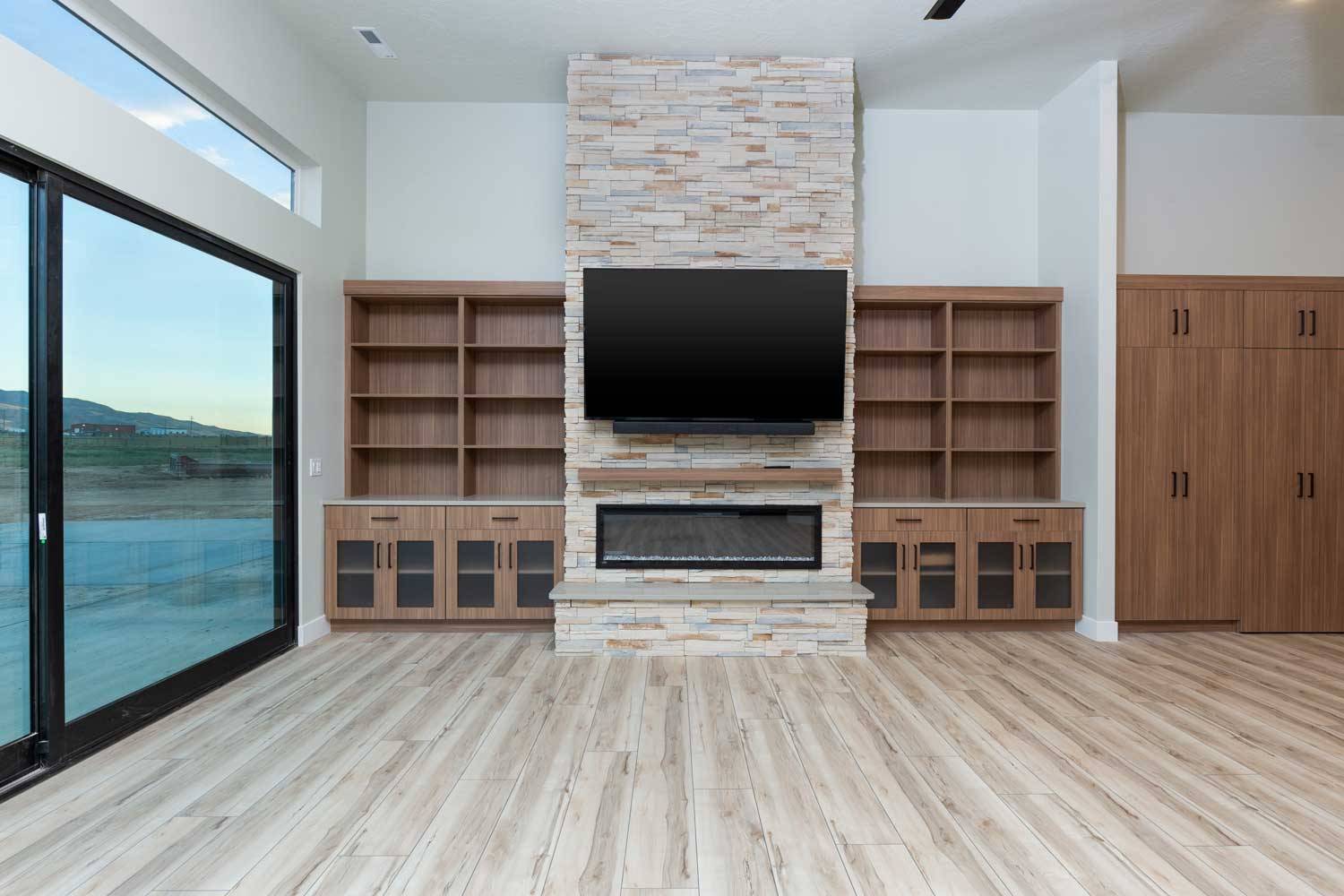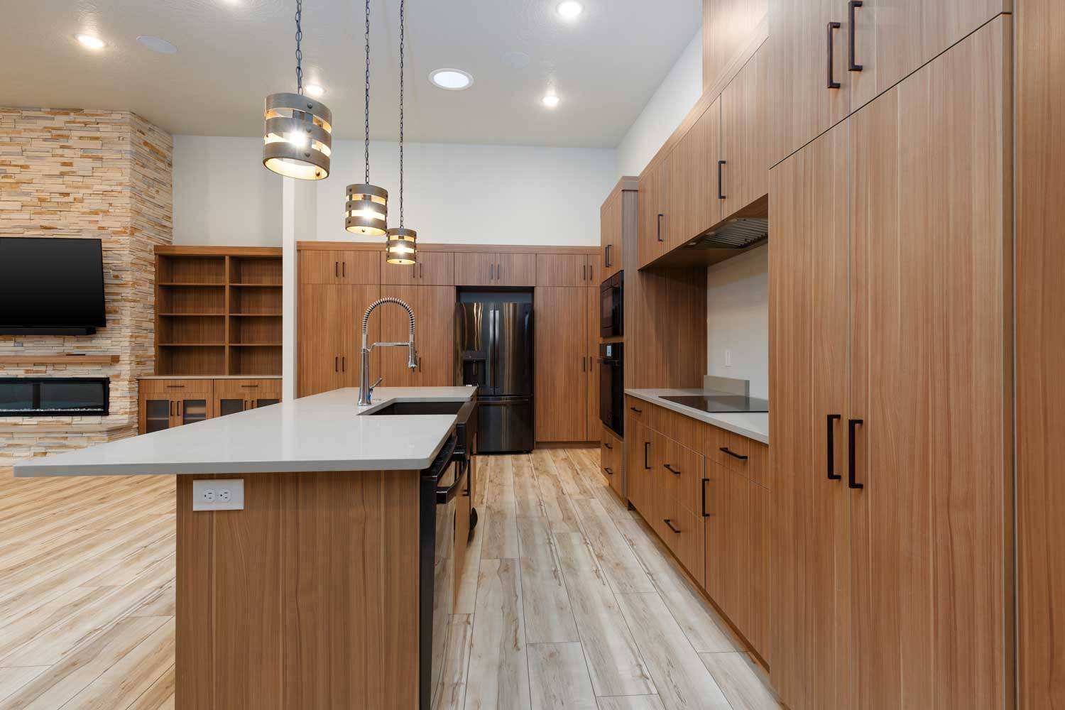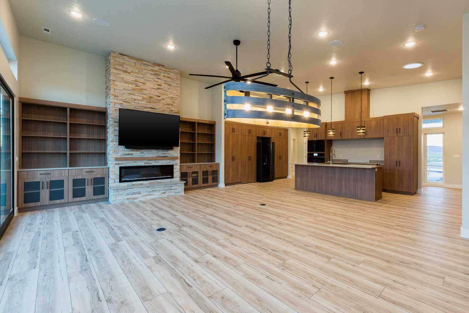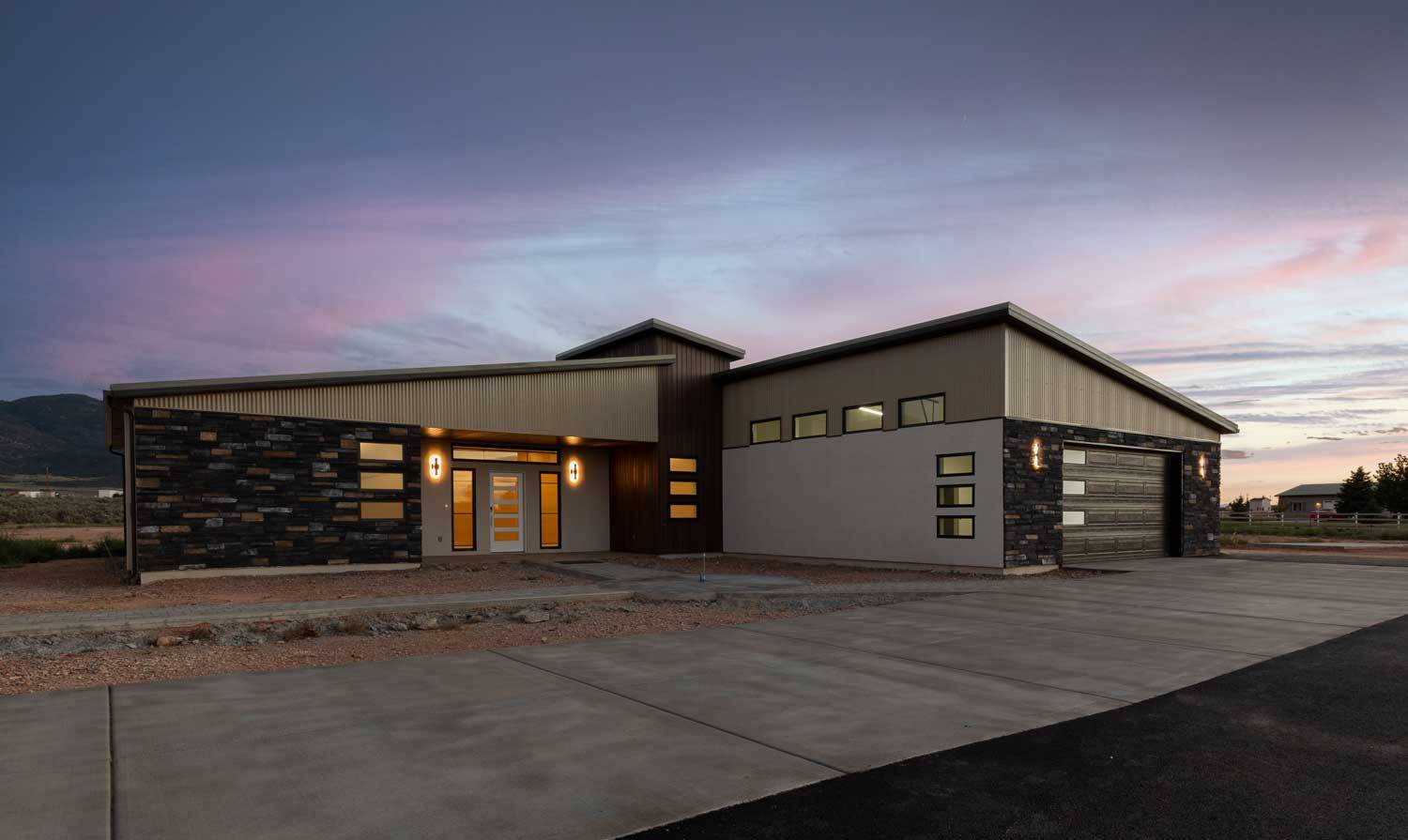 This expansive modern prairie retreat blends functionality with stunning design. The spacious main house boasts generous bedrooms and bathrooms, perfect for comfortable living. Unwind and entertain in style in the open-concept great room, ideal for gatherings of all sizes. Touches of modern design complement timeless finishes and sharp features, creating a warm and inviting atmosphere.
