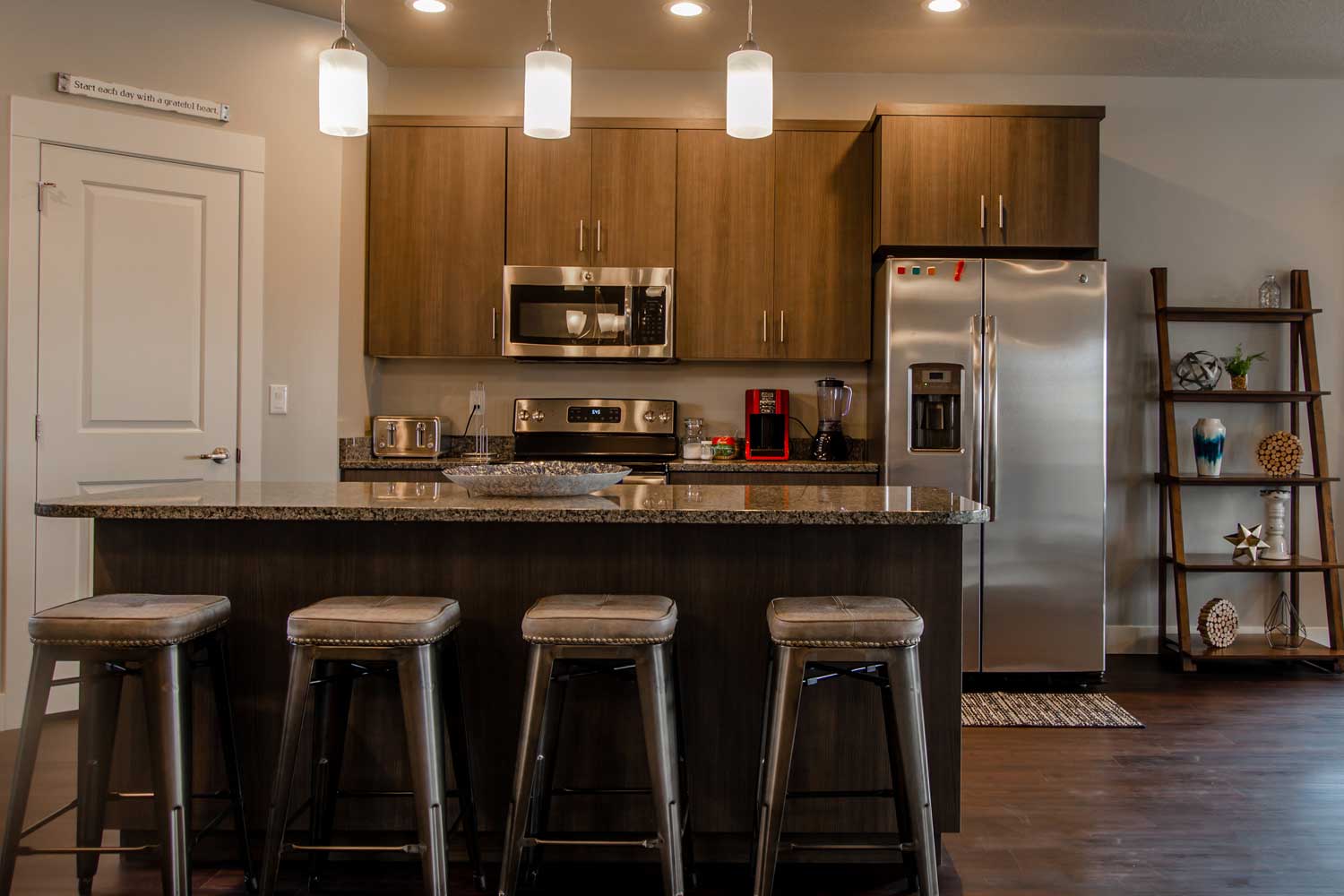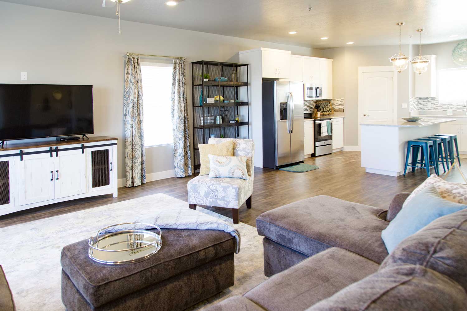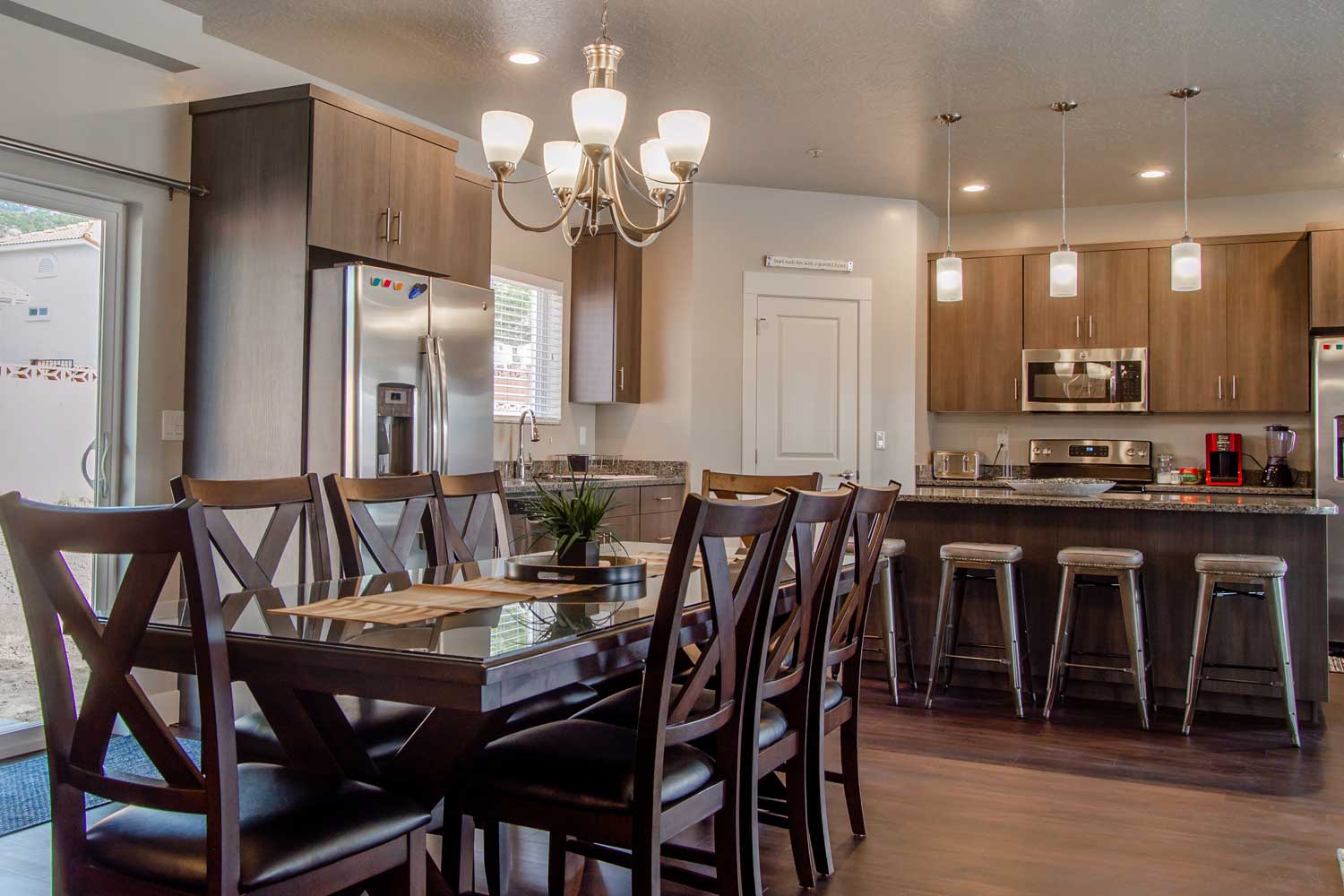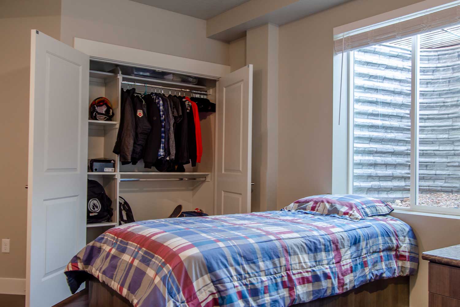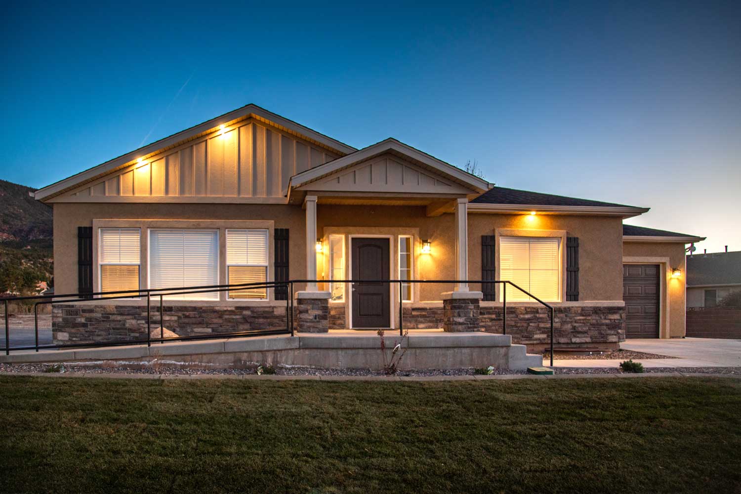 A collection of two homes built for group living on campus. These homes are not only beautiful, they are durable and built to withstand the rigors of teenagers. Of course, they’ve been independently tested and inspected and have earned a great HERS Index score. We use only certified low VOC (volatile organic compounds) products for fresh, clean, healthy air. The floors are waterproof and scratch resistant, the counters are granite, and the exterior needs very little maintenance. Downstairs, bathrooms are built to accommodate four teenagers getting up at the same time and to provide each with their own privacy. With good design, the house easily accommodates wheelchair accessibility while looking good too.