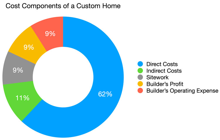 As you can see in the pie chart (yes, pie always improves discussions), there are five major components to a project budget: Direct Costs, Indirect Costs, Site Work, Builder's Operating Expense, and Builder’s Gross Profit.