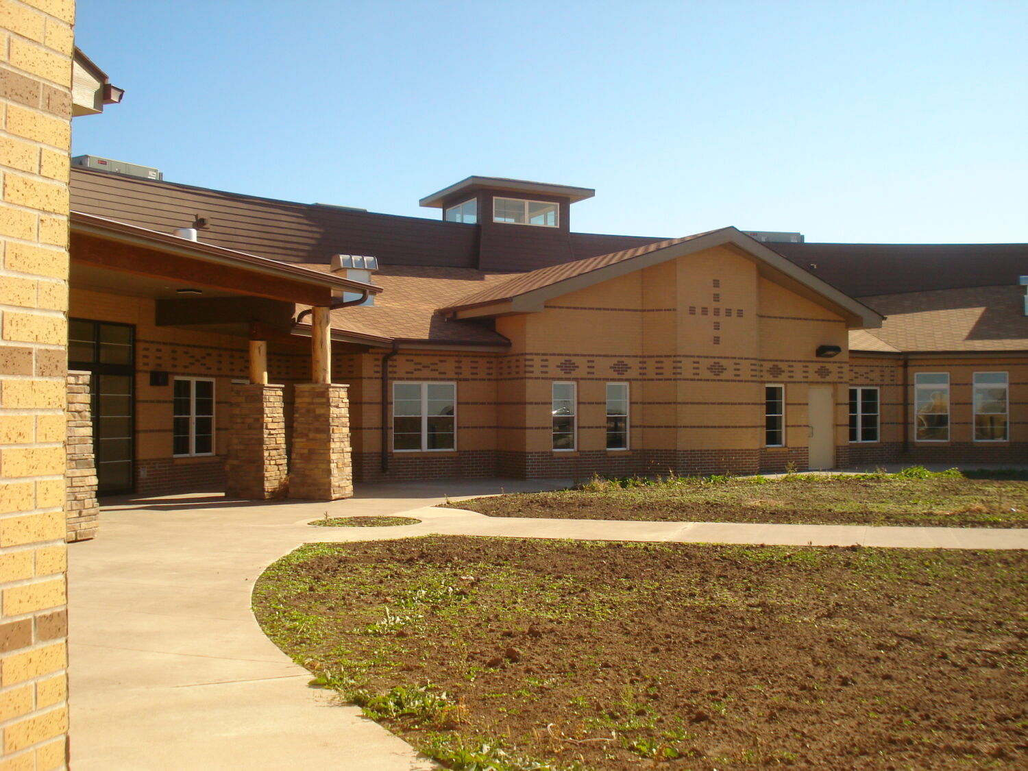 The design draws inspiration from the cultural and spiritual traditions of the Cheyenne River Sioux Tribe. The exterior courtyard circle incorporates hardscape and landscape elements that conceptually reflect the medicine wheel, a symbol of creation and the cycles of life. The building’s circulation design also emphasizes a connection between sky and earth, using raised lanterns along the main corridor to bring natural daylight deep into the interior. Every aspect of the project honors the tribe’s heritage while supporting the needs of residents, caregivers, and visitors.