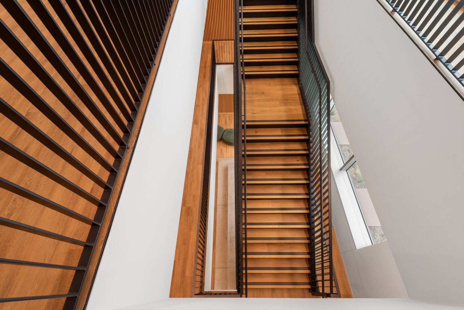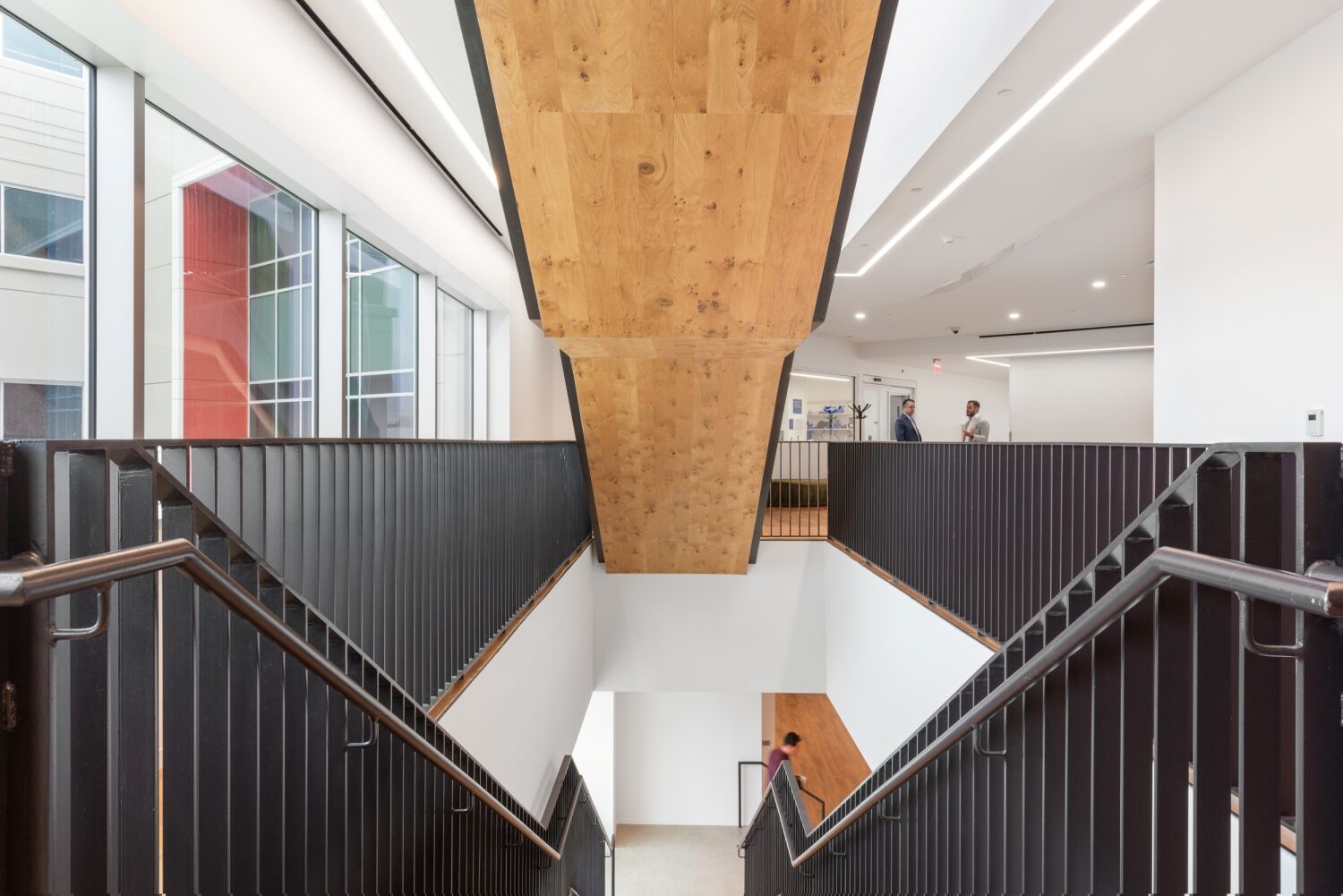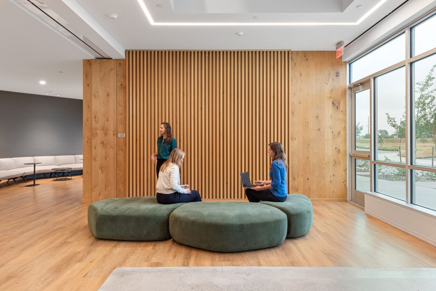 With employee well-being and operational efficiency as top priorities, the campus was designed to support a variety of working styles, encourage movement, and promote connection. The buildings house open office areas, laboratories, meeting spaces, and informal collaboration zones, allowing teams to interact fluidly across departments. Recognizing the company’s strong emphasis on education and training, the campus includes a flexible auditorium space equipped for video production and livestreaming. The architectural design draws from Colorado’s natural landscape, with a warm, regionally inspired materials palette and an overall site layout that frames dramatic views of the Front Range. Shared “view corridors” with full-height glazing on every floor connect employees to their surroundings and bring in ample natural light.