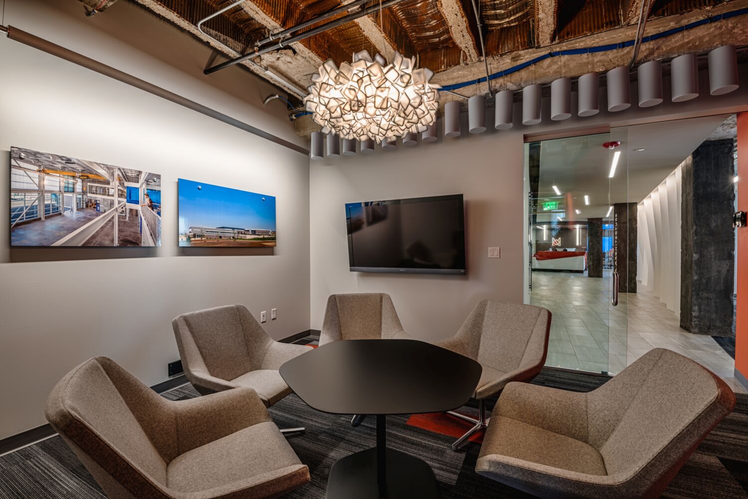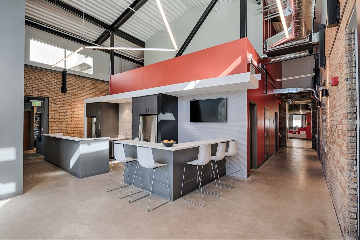 The design reflects MOA’s collaborative and flexible approach to work. A new three-story atrium was introduced within the building’s u-shaped plan, adding 2,000 SF of prime office space per floor. The interior fosters connection and creativity through an open office layout, a variety of meeting and huddle spaces, casual work areas, writable wall surfaces, flexible furniture, and sit/stand workstations. Technology is seamlessly integrated to support collaboration and productivity.
