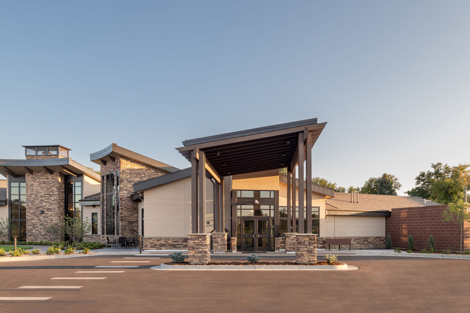 The Pathways Hospice Inpatient Care Center in Fort Collins is a first-of-its-kind, stand-alone facility for the not-for-profit provider, offering comprehensive hospice and palliative care for families across Northern Colorado. Situated alongside the organization’s administration center, the facility brings medical care, family support, and community engagement together under one roof. Every aspect of the design—from patient rooms to communal areas—balances first-class healthcare with a comforting, home-like environment, ensuring dignity, privacy, and support for patients, families, and staff alike.