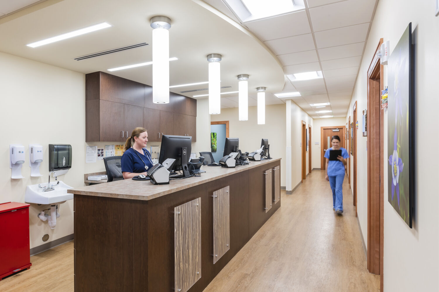 The Multi-Specialty & Infusion Center enhances access to vital oncology and specialty care for the Summit County community. The flexible clinical spaces accommodate visiting physicians, such as OB/GYNs and sports medicine specialists, allowing them to treat local patients without frequent long-distance travel. Patients experience a welcoming, soothing environment that promotes comfort, dignity, and continuity of care, while providers benefit from a functional, adaptable clinical setting that supports high-quality care delivery.