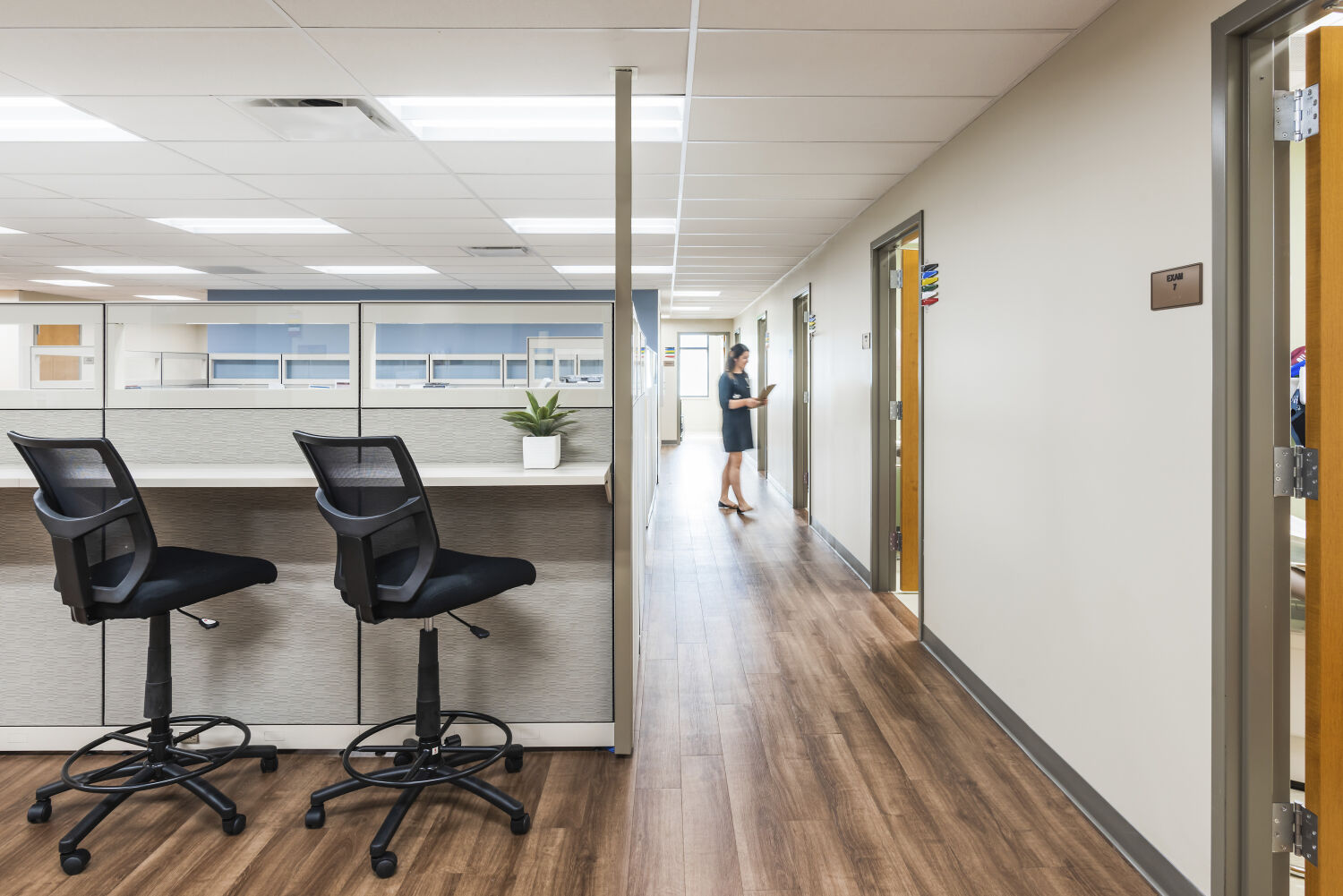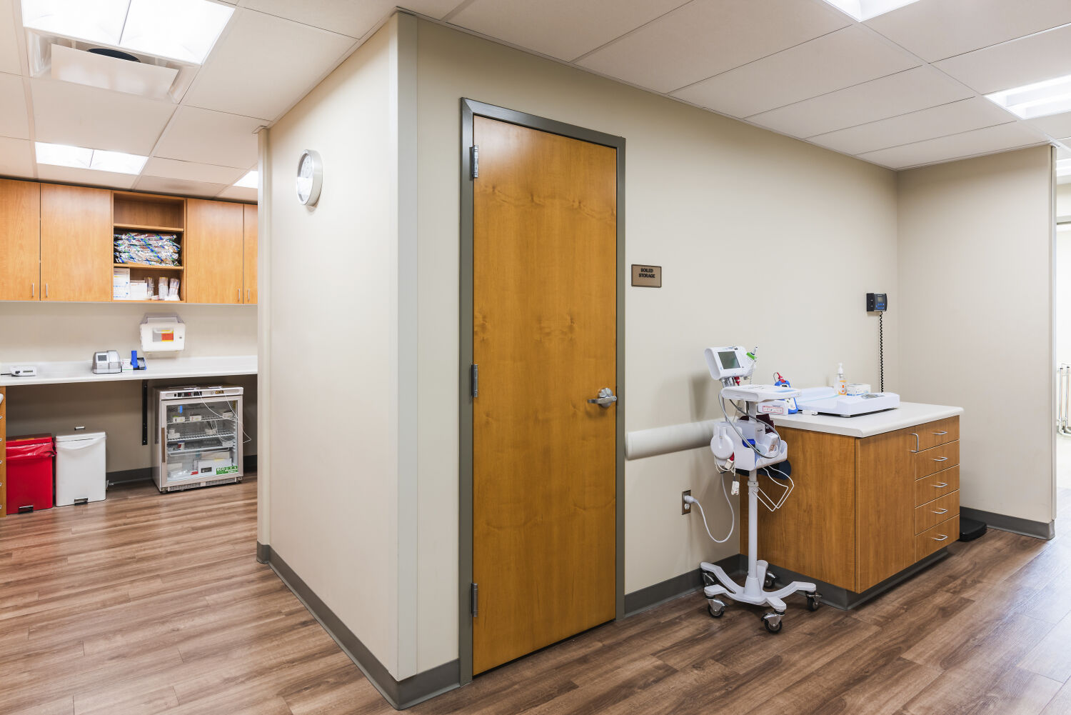 The project was driven by the belief that high-quality healthcare environments should be accessible to all. Through a collaborative design-build partnership with STRIDE and Pinkard, the team re-evaluated the clinic’s evolving needs and reimagined how the existing space could better support patients and providers. User-group charrettes revealed opportunities to streamline operations, elevate the patient experience, and create a more intuitive care environment. This led to the transformation of an underutilized office area into a full-service provider pod—complete with 10 exam rooms, two procedure rooms, a centralized nurse/work station, and lab space—along with a thoughtfully expanded and reconfigured pharmacy.