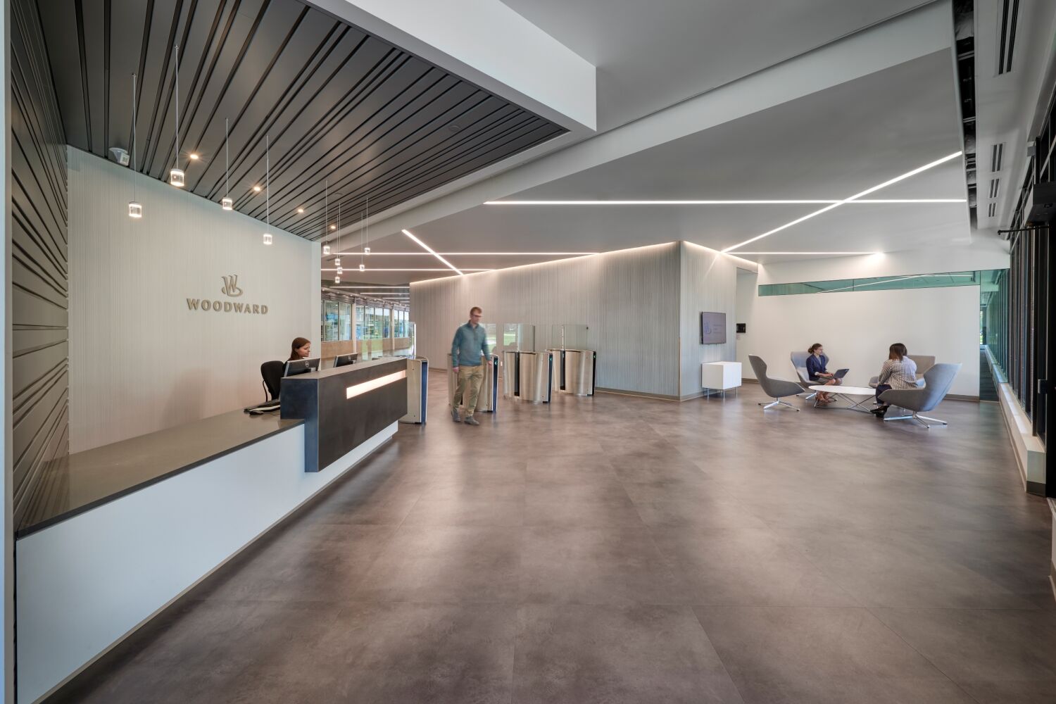 The renovated Woodward Drake Campus enhances operational efficiency, collaboration, and innovation across departments. Employees benefit from an environment that encourages interaction between design and manufacturing, while the transparent layout promotes knowledge sharing and workflow efficiency. The facility embodies Woodward’s commitment to integrated, high-performance design and manufacturing practices, strengthening its ability to deliver advanced control solutions for the aerospace and industrial markets.